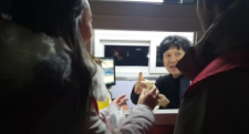 数名身穿红色志愿者背心、手提热水瓶和一次性纸杯的志愿者格外引人注目。她们兵分两路,分工协作迅速行动起来。