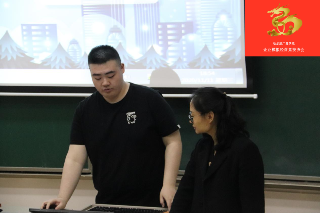 本次培训活动还特别邀请了企业模拟经营竞技协会的优秀领导者、具有丰富比赛经验的2018级工商管理1班的于坤同学作为培训的主讲人,于坤同学详细地对企业虚拟经营环境进行了的介绍,并对在经营过程中所要遵循的规则和注意事项进行了具体的讲解。由于学生们都是初次接触“经营之道”,对企业的主要工作流程和特点都不是很熟悉了解,所以于坤同学从组建公司开始讲解,带着学生们一点点地学习。在有学生提出问题疑虑时,于坤同学会第一时间帮助他们答疑解惑。