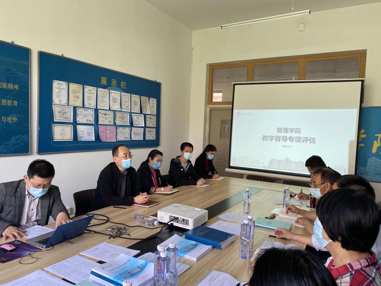 孙宏宁主任对本次专项督导检查进行总结。第一,管理学院充分重视工作,各项评估材料准备齐全,能积极组织开展同行听课、二级督导听课,资料与数据较为详尽;第二,本着“应开尽开”原则,课程开设情况较好,执行情况与课程大纲一致,做到应讲尽讲;第三,管理学院选择培育的课程思政建设的课程有特点、有亮点。孙主任还对学院接下来的教学工作提出建议,鼓励管理学院在今后工作中应多树“长板”,用“长板”带动,补齐“短板”,力争实现各项工作规范有序,同时为日后的各专项教育教学检查评估奠定基础。