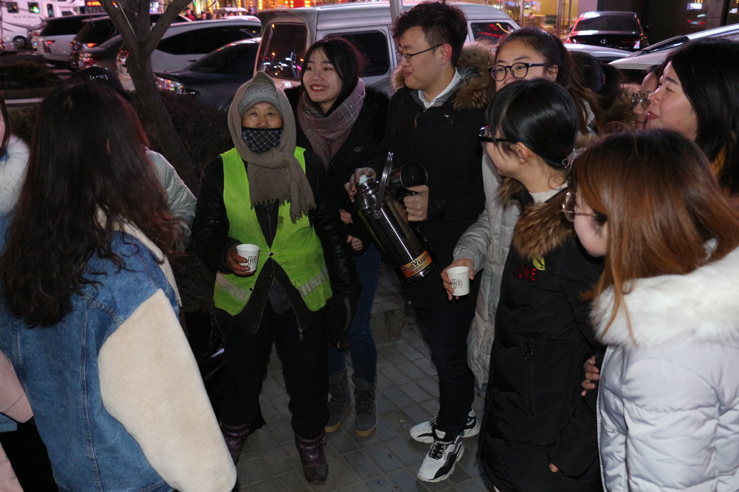 近日,哈尔滨气温骤降,刺骨的寒风不仅凛冽着人们,更凌乱着街道,许多环卫工和安保人员仍然坚守在自己的岗位上,为了让在寒冬中的环卫工人和保安感受到温暖,哈尔滨广厦学院通识教育学院团学组织成员和党总支成员于11月30日晚上16:30在学院路附近组织了一场“温暖有你,传递爱心”给环卫工和保安人员送热水活动。