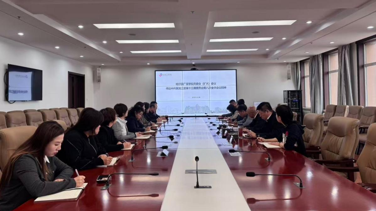 11月24日上午,学校召开党委(扩大)会议,专题传达学习中国共产党黑龙江省第十三届委员会第八次全体会议精神,切实把思想和行动统一到党中央决策部署及省委工作要求上来。学校全体党委委员,各二级学院党总支书记、院长参加会议。会议由党委书记李忠祥主持。