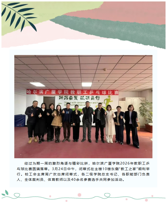 乒跃赛场展风采 凝心聚力向未来 | 哈尔滨广厦学院2026年教职工乒乓球比赛圆满闭幕