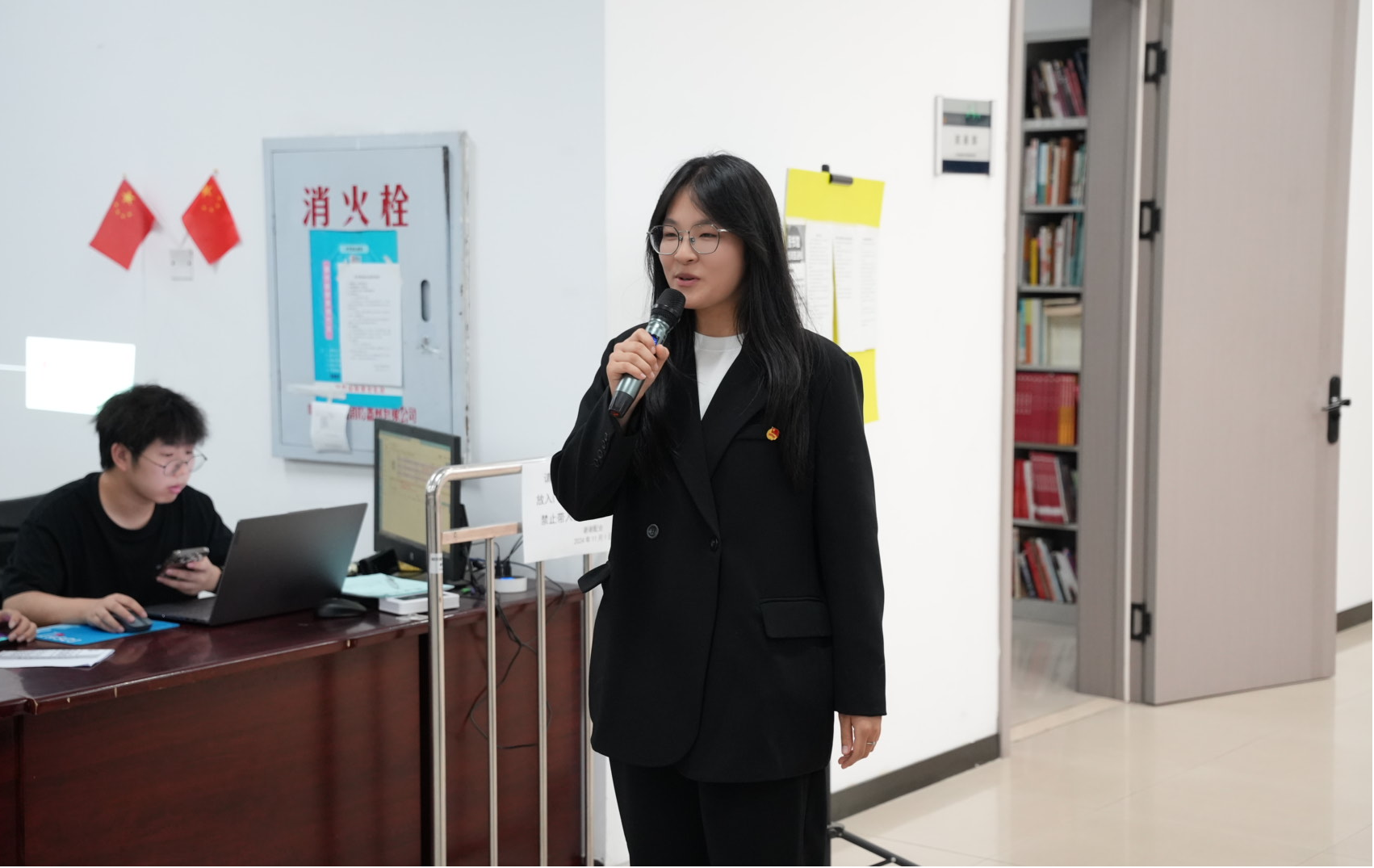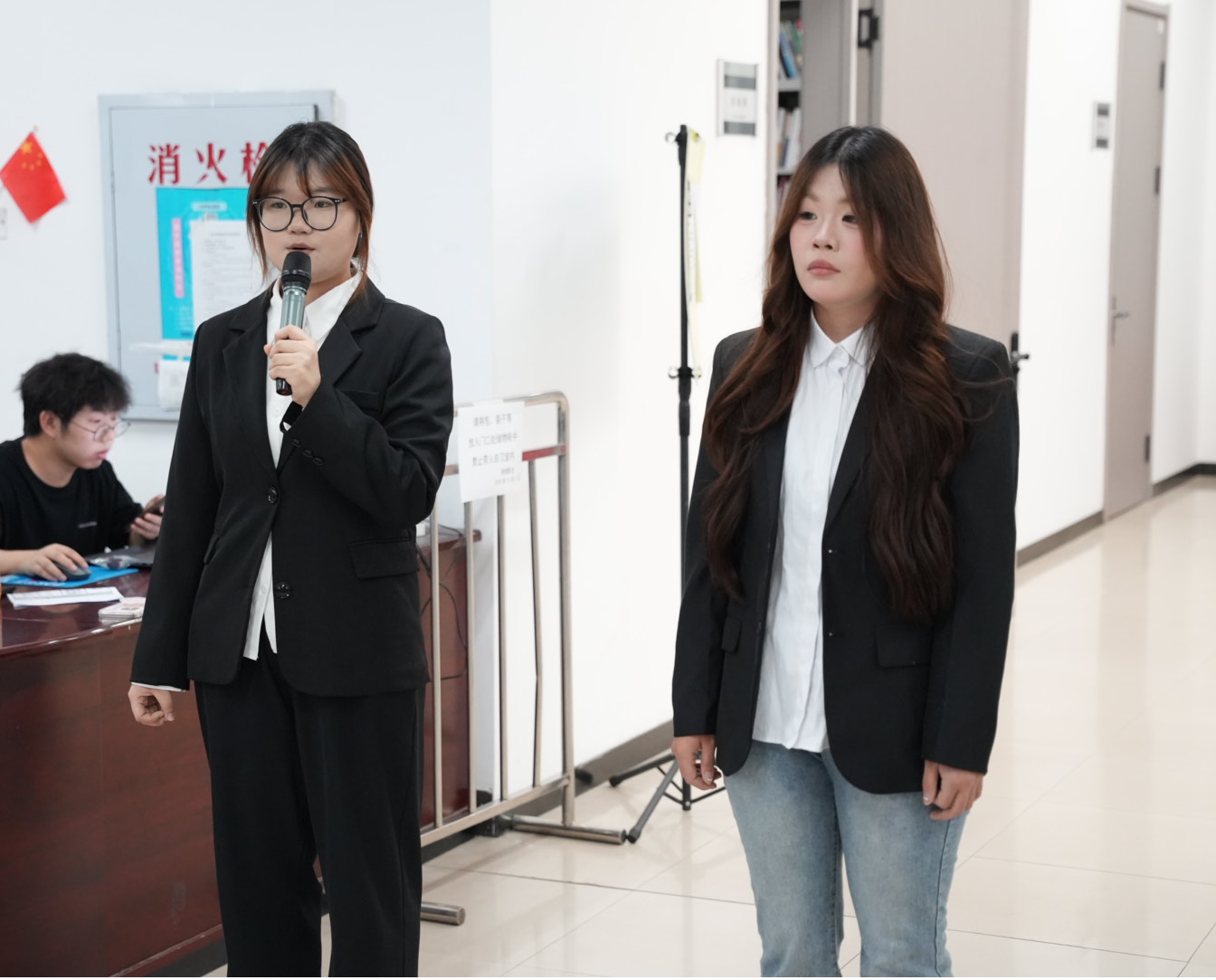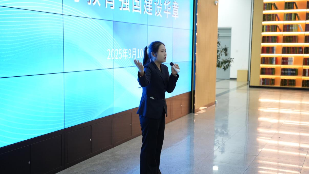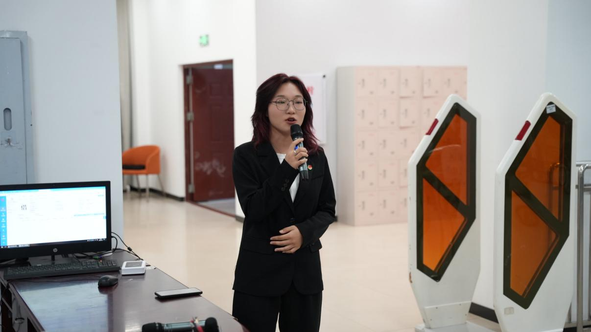 随后,讲解员带领新生前往二楼的综合借阅区。该区域主要收藏哲学、法学、教育学等人文社科类书籍,以及各类中外文工具书。讲解员现场演示了自助借还机的操作流程,从图书扫码、身份验证到借阅确认,指导新生实操,同时介绍了图书续借、逾期处理等注意事项以及读书学分考核规定。此外,干部们还通过图文展板与短视频,介绍了图书馆学生管理团队的组成与职能,包括图书整理、活动策划、读者服务等部门,为后续团队纳新做好预热。