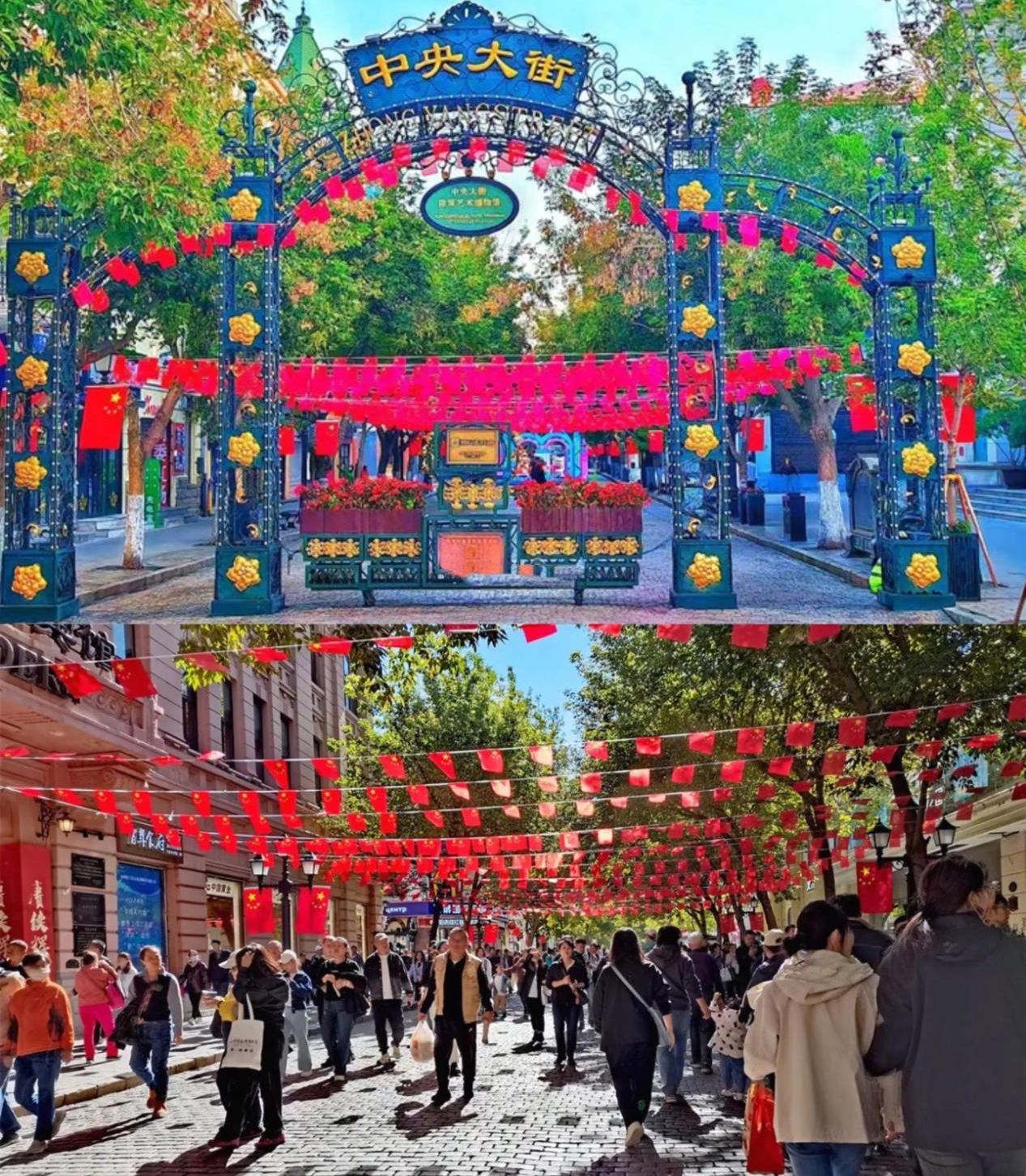 中央大街街道两旁红旗招展,广场上花团锦簇,电子屏幕上滚动播放着祖国的辉煌成就。然而,在这个举国同庆的时刻,我更想去寻找那些细微却又真挚的爱国表达。