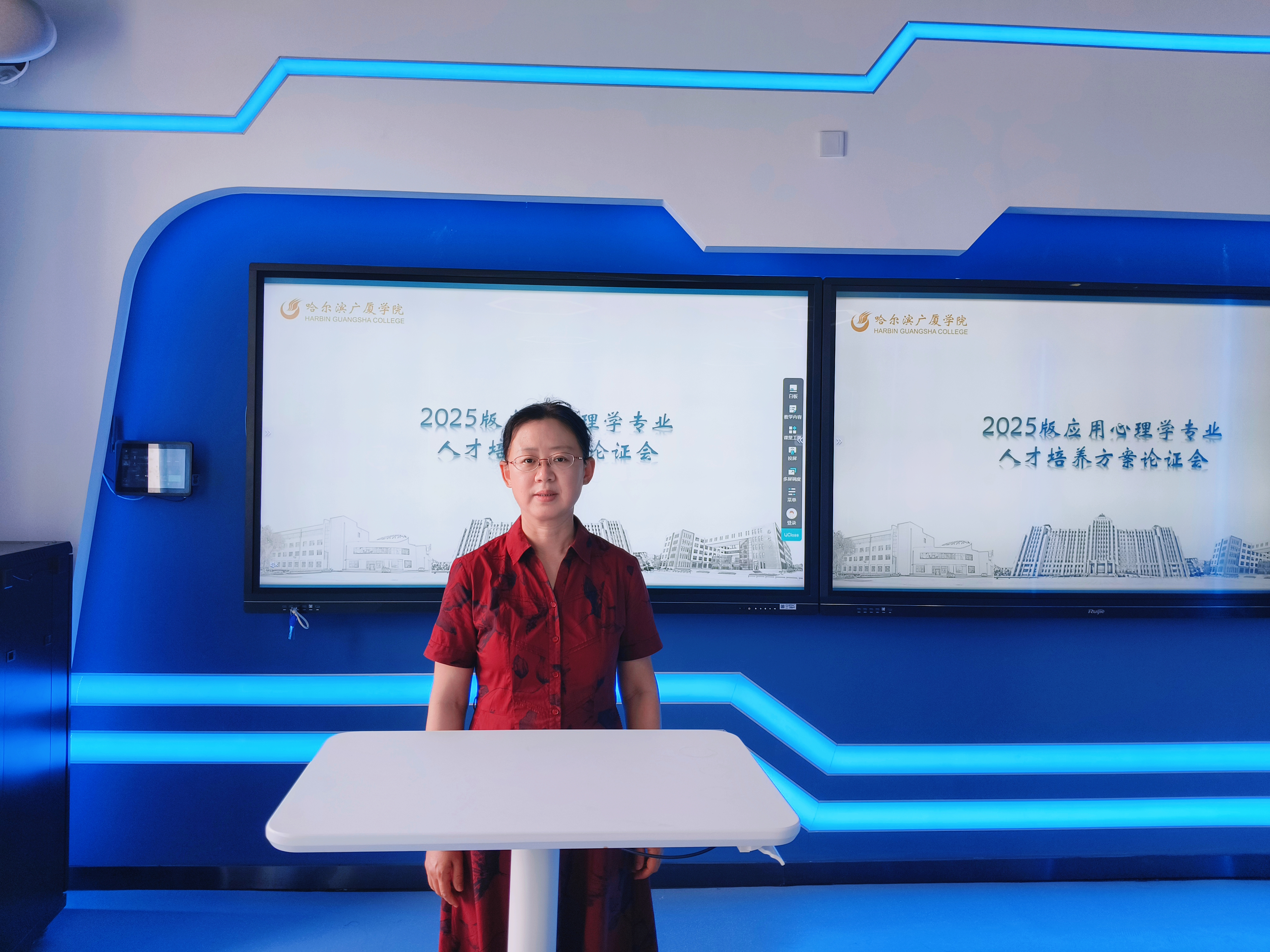 为全面提升人才培养质量,深化人工智能与专业课程的深度融合,科学合理设置产教课程模块,哈尔滨广厦学院新视域文化产业学院组织应用心理学专业于4月15日在主楼0521室召开2025版人才培养方案升级论证会。会议特邀哈尔滨师范大学刘爱书教授及趣问咨询有限公司高晶副总经理进行论证指导,由专业主任刘晓华主持,全体教师参加。