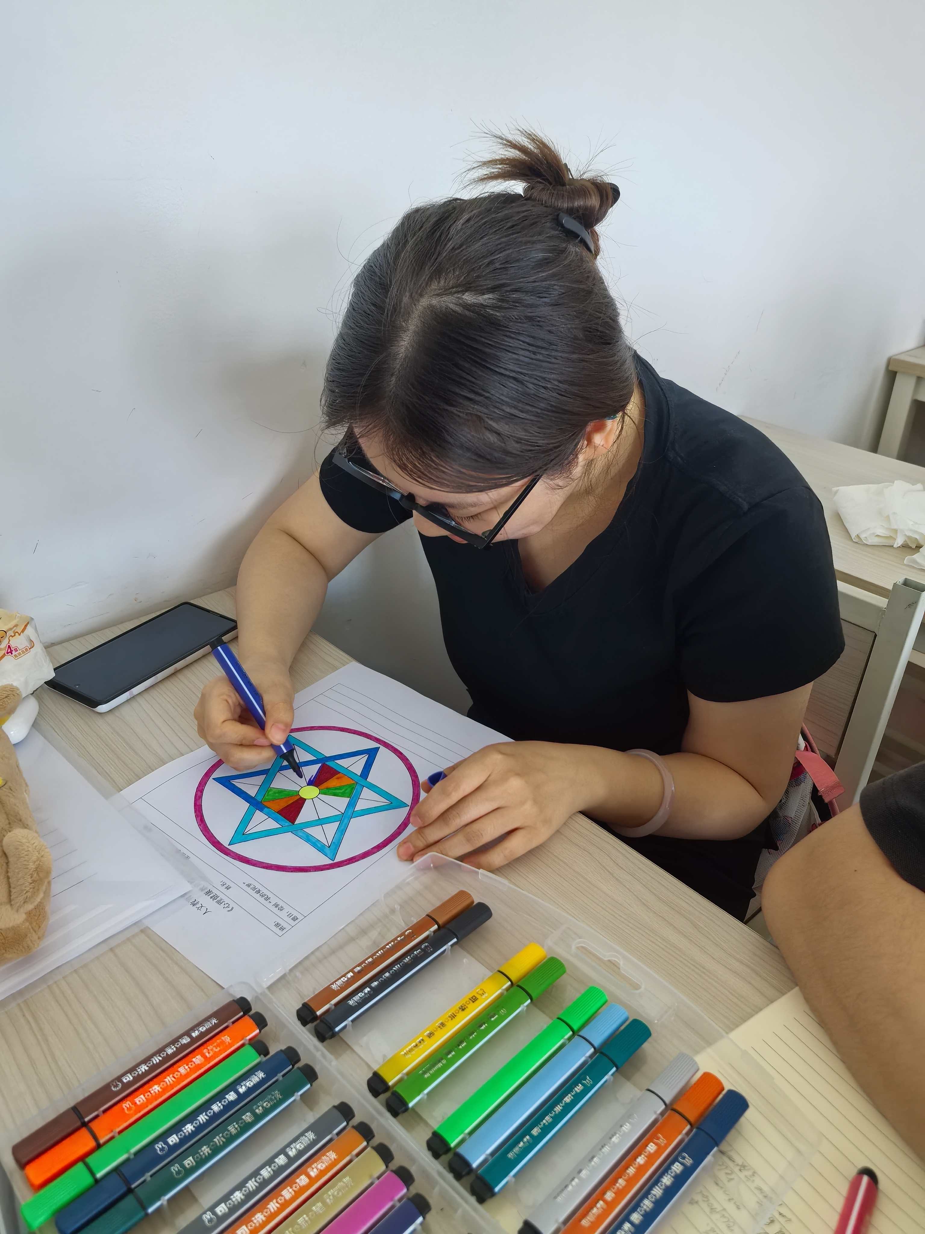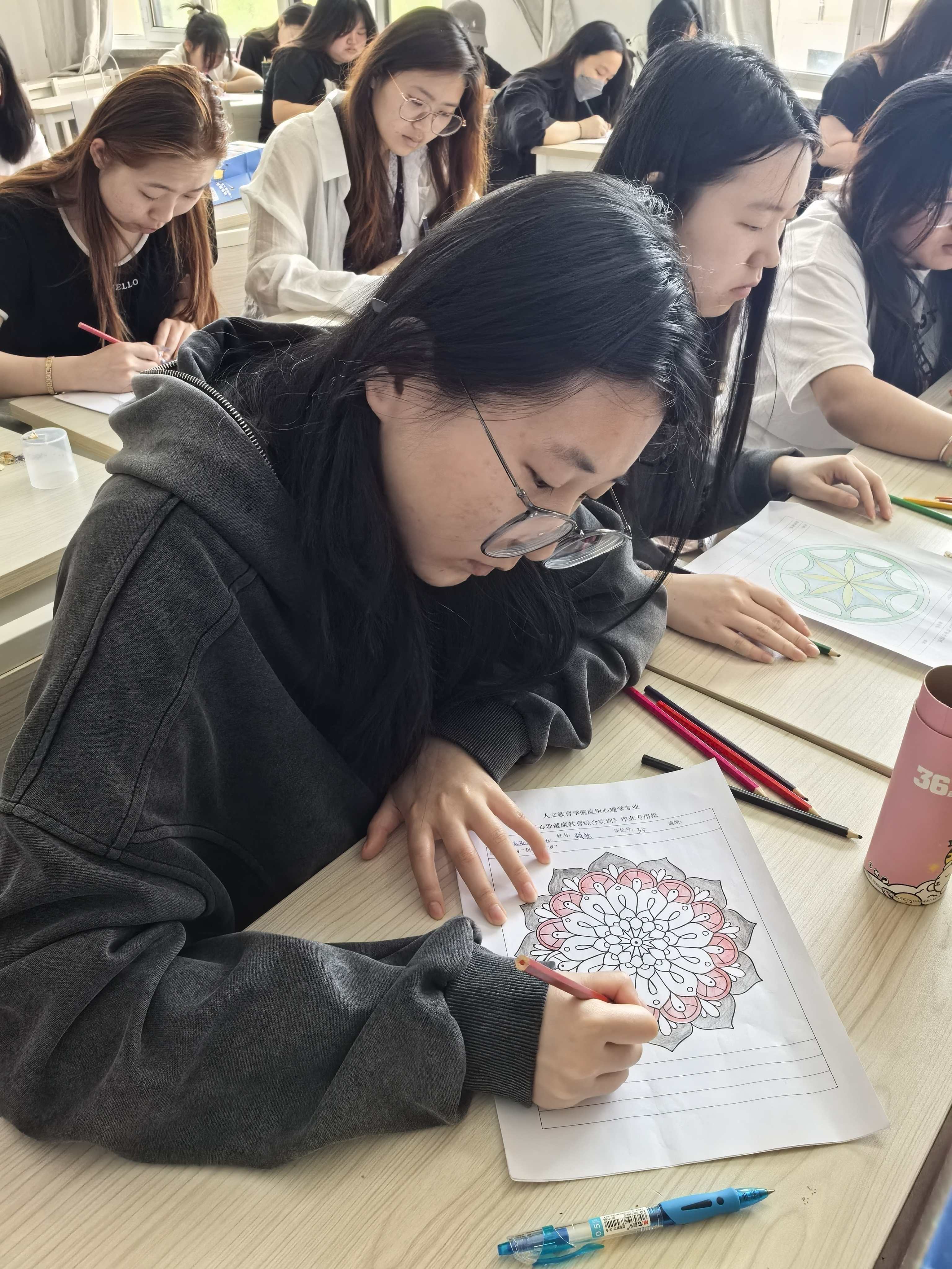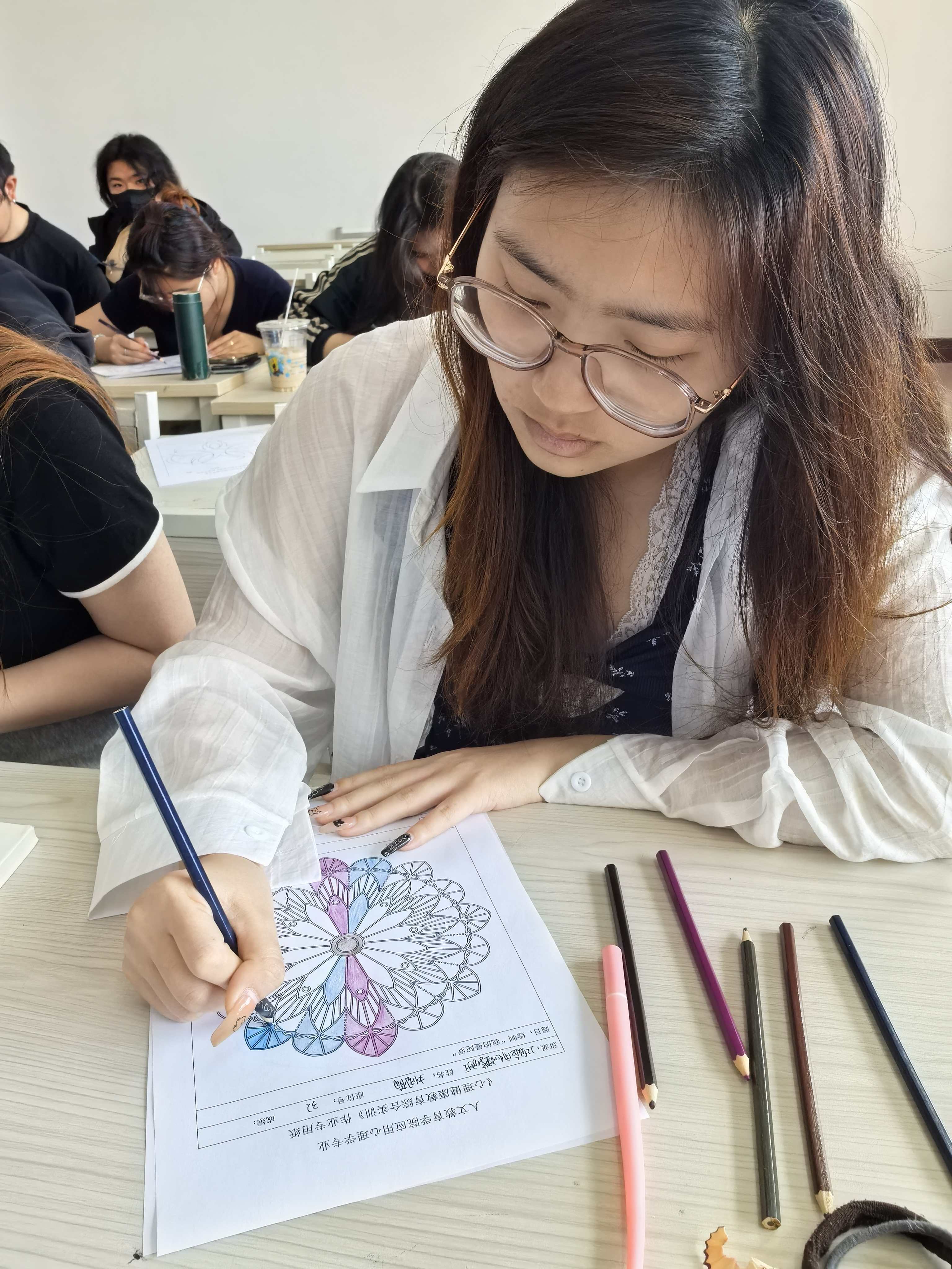 色彩与线条是疏导情绪的桥梁,当画笔在画纸上流转时,不仅能帮助学生探索内心、疏导情绪,更是艺术表达的重要载体。本次活动通过融入曼陀罗绘画这一高效的非语言心理干预技术,帮助学生将心理学理论转化为情绪疗愈、心理疏导的实际能力,相较于传统课堂侧重理论讲授的模式,有效弥补了传统教学在实操能力培养上的短板,推动专业进一步优化课程建设的实践性与应用性,实现“学习与产业同频,技能与需求对接”,更能凸显专业“按需培养”特色,让学生在掌握专业核心素养的同时提升就业竞争力。
