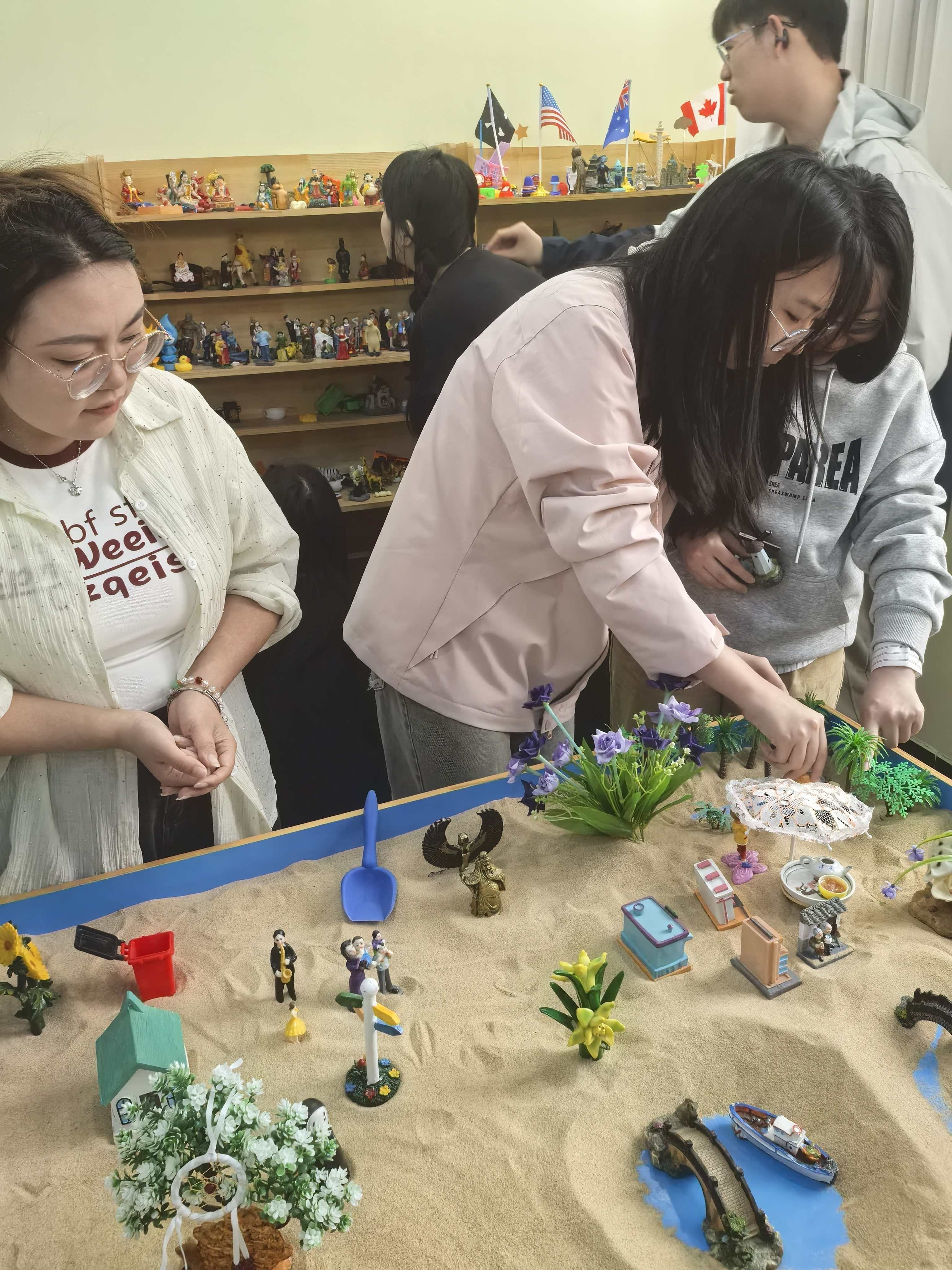 参与者每一次小心翼翼的摆放,都是与自我内心的一次真诚对话;每一次对同伴作品的理解,都是对他人世界的一份深切共情。沙盘治疗作为表达性艺术治疗的重要方法,在我校应用心理学专业教学中占有重要地位。
