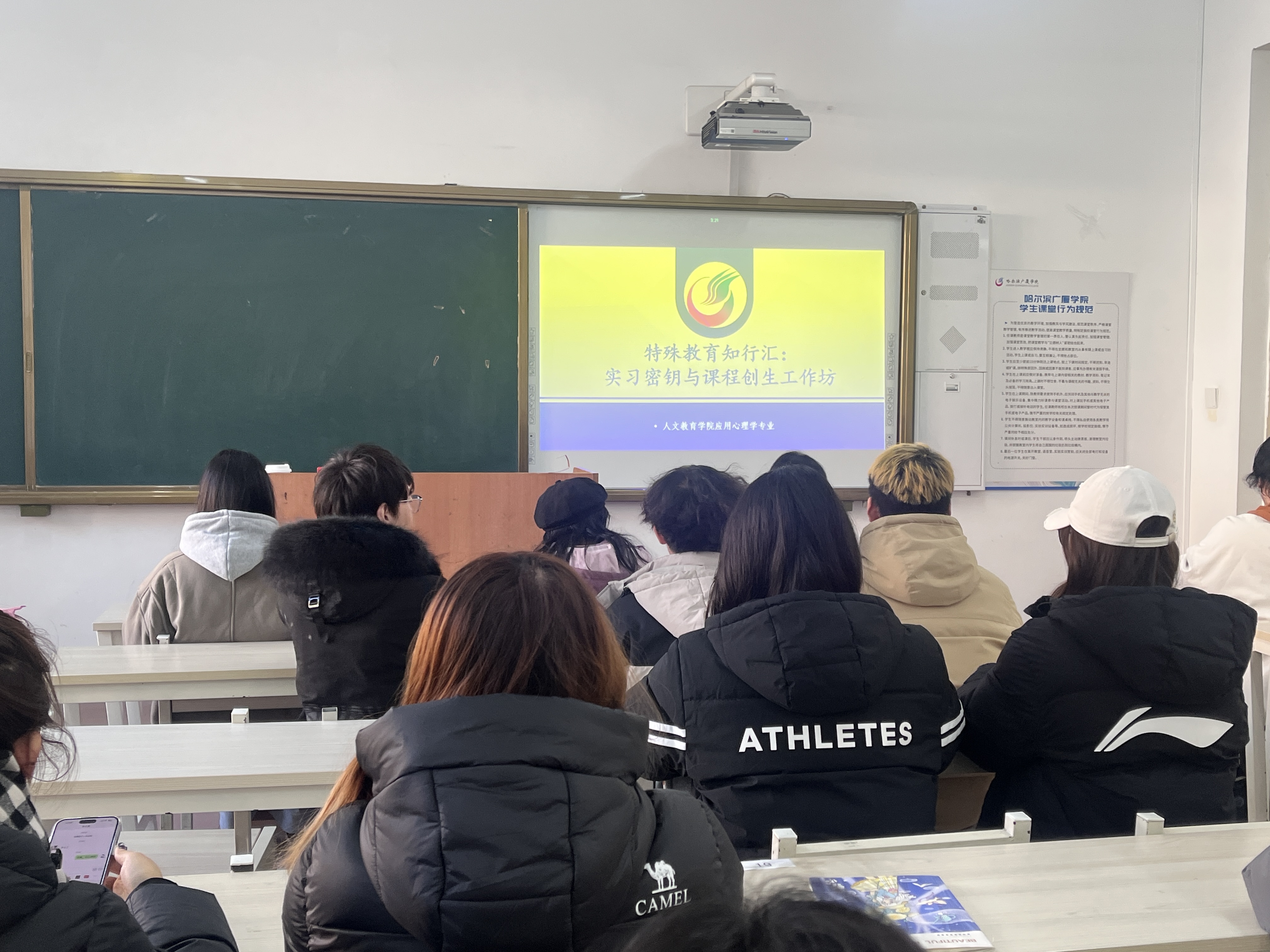 11月2日,哈尔滨广厦学院新视域文化产业学院与人文教育学院携手举办“特殊教育产教融合知行汇:实习密钥与课程创生工作坊”。本次活动旨在以“实习密钥”为核心抓手,搭建归来实习生、专业教师与低年级学生三方共议共享的平台,实现实践经验向课程内容与教学设计的反哺转化,进一步推动《特殊儿童心理与教育》课程的迭代与优化。