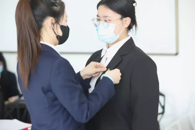 通识教育学院党员教师为新晋预备党员佩戴党徽,并面对党旗庄严宣誓。全体党员胸戴党徽、高举右拳,面对鲜红的党旗,用最真诚、最坚定的声音许下了郑重誓言,表达了对党的无限忠诚和为共产主义奋斗终生的决心。