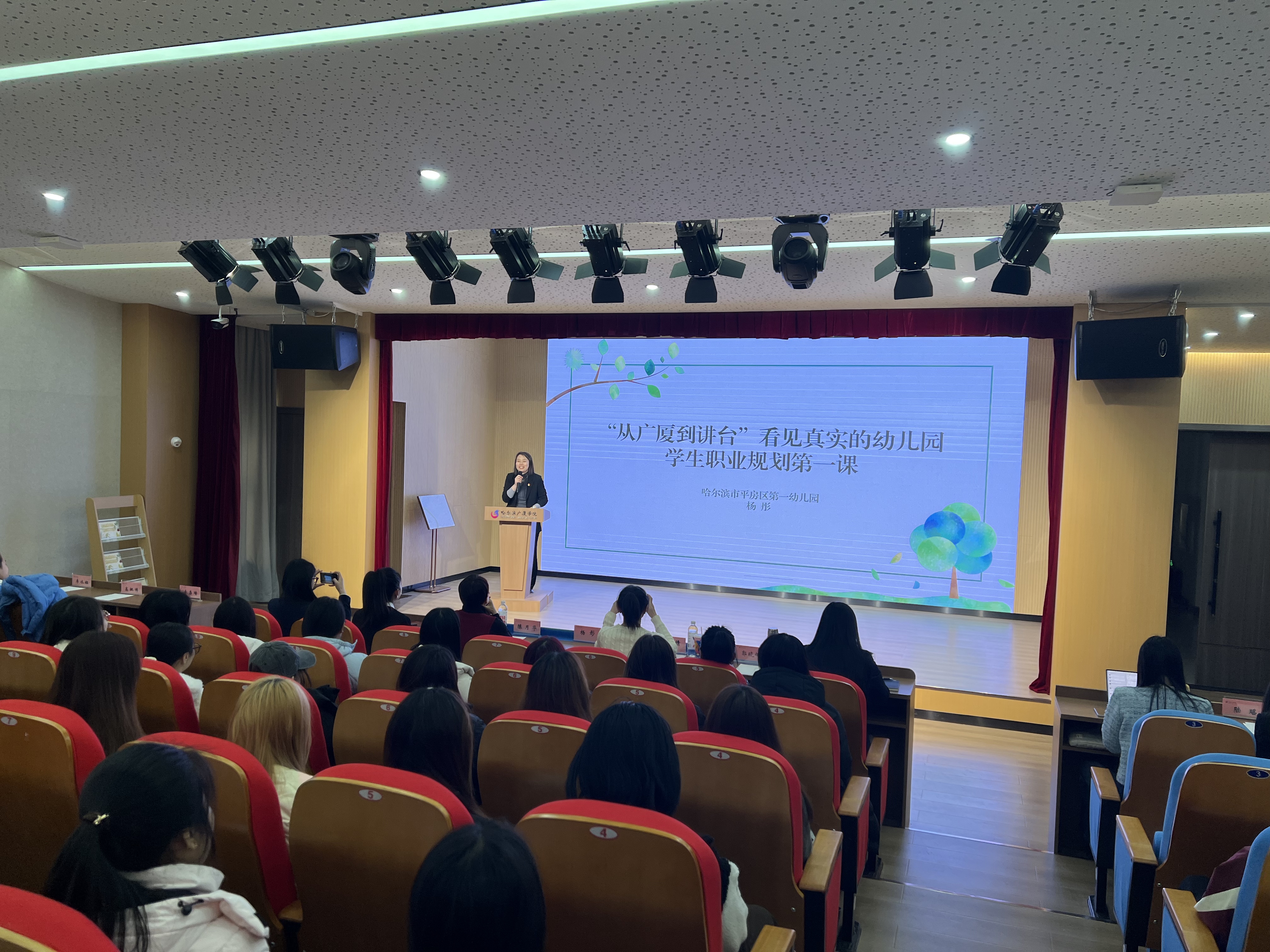 为帮助学前教育专业学生明确职业发展方向,搭建从理论到实践的桥梁,哈尔滨广厦学院新视域文化产业学院近日邀请哈尔滨市平房区第一幼儿园副园长杨彤、教学主任杨倩来校,面向专业学生开展了一场内容扎实的行业分享。本次活动由学前教育专业主任何文博主持,专业教师及学生共同参与,聚焦学前教育行业现状与职业成长路径。
