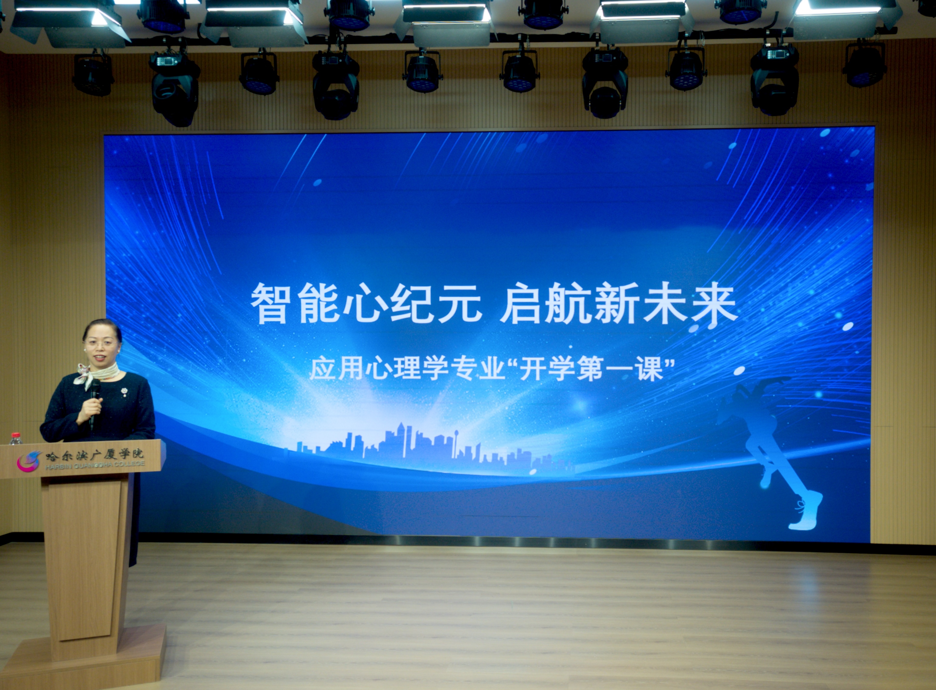 春回大地,万象更新。3月30日上午,哈尔滨广厦学院小剧场内气氛热烈、掌声雷动。由该校新视域文化产业学院主办的“智能心纪元,启航新未来”应用心理学专业“开学第一课”在此隆重启幕。应用心理学专业师生齐聚一堂,共同参与了一场关于人工智能与心理学深度融合的智慧盛宴,拉开了探索未来心理服务新形态的序幕。