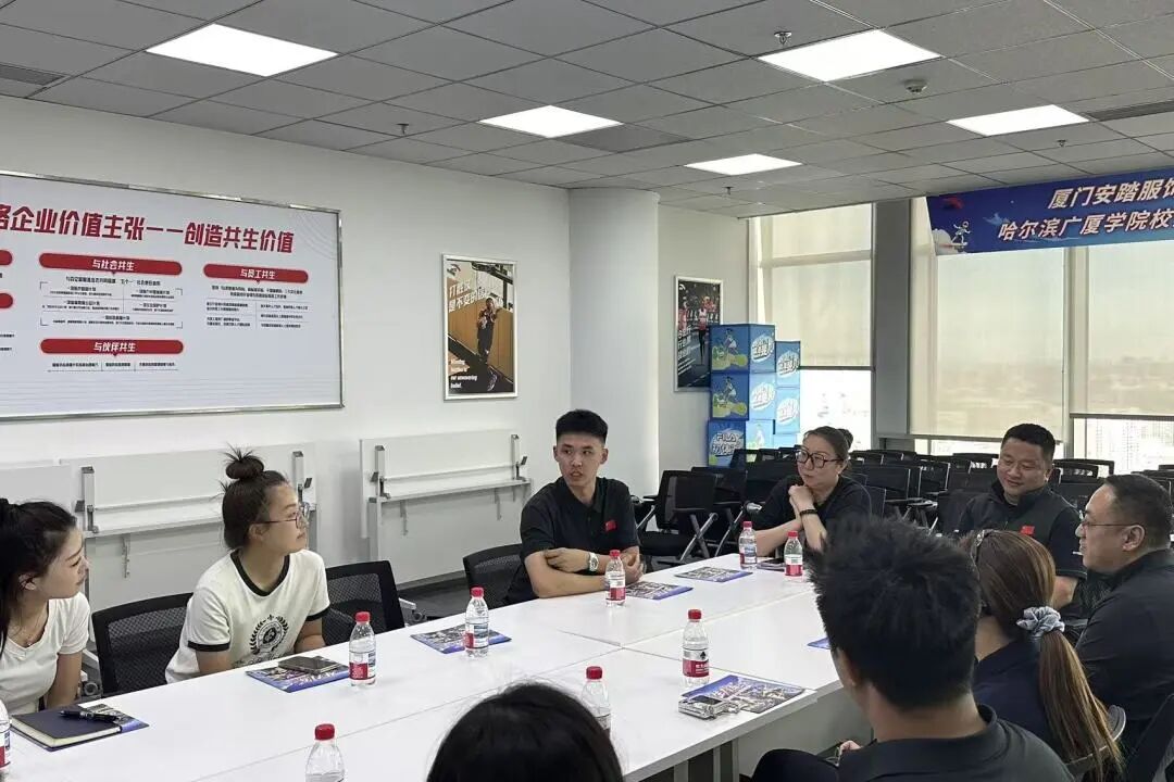 为进一步深化校企合作,拓展就业渠道,精准对接企业用人需求,同时关切毕业生实习就业实况。9月15日哈尔滨广厦学院学工处就业指导老师李铁梁、信息学院党总支副书记王宁娟、以及毕业生辅导员老师前往安踏企业开展走访调研与座谈交流。