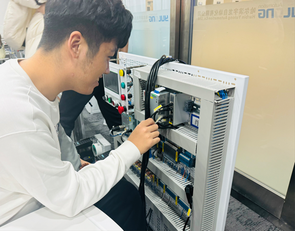 为深化产教融合,提升学生对专业的认知水平, 3月18日,哈尔滨广厦学院信息学院(新E代数智未来产业学院)组织2025级电气工程及其自动化专业学生,赴哈尔滨宇龙自动化有限公司开展参观见习活动。