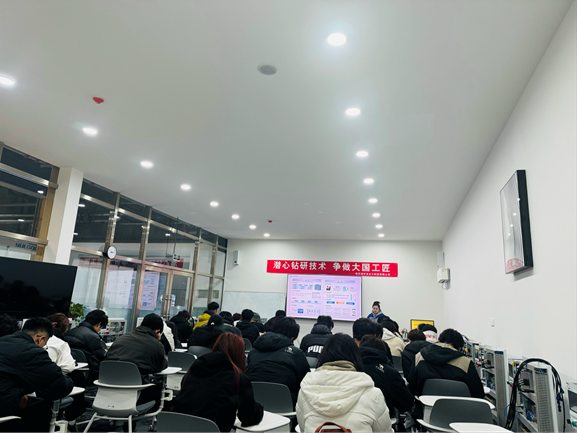 活动中,企业相关负责人首先带领师生参观企业展示区,介绍了公司发展历程、业务布局及在智能制造领域的应用情况。通过典型案例讲解,同学们对自动化设备研发及工业场景应用有了更加直观的认识。