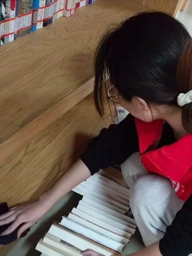 带着志愿服务的热忱踏入图书馆,扫帚与抹布成了伙伴。本以为是寻常清扫,却在拂去尘埃时,为知识的殿堂拂开蒙尘,让书香更清润。