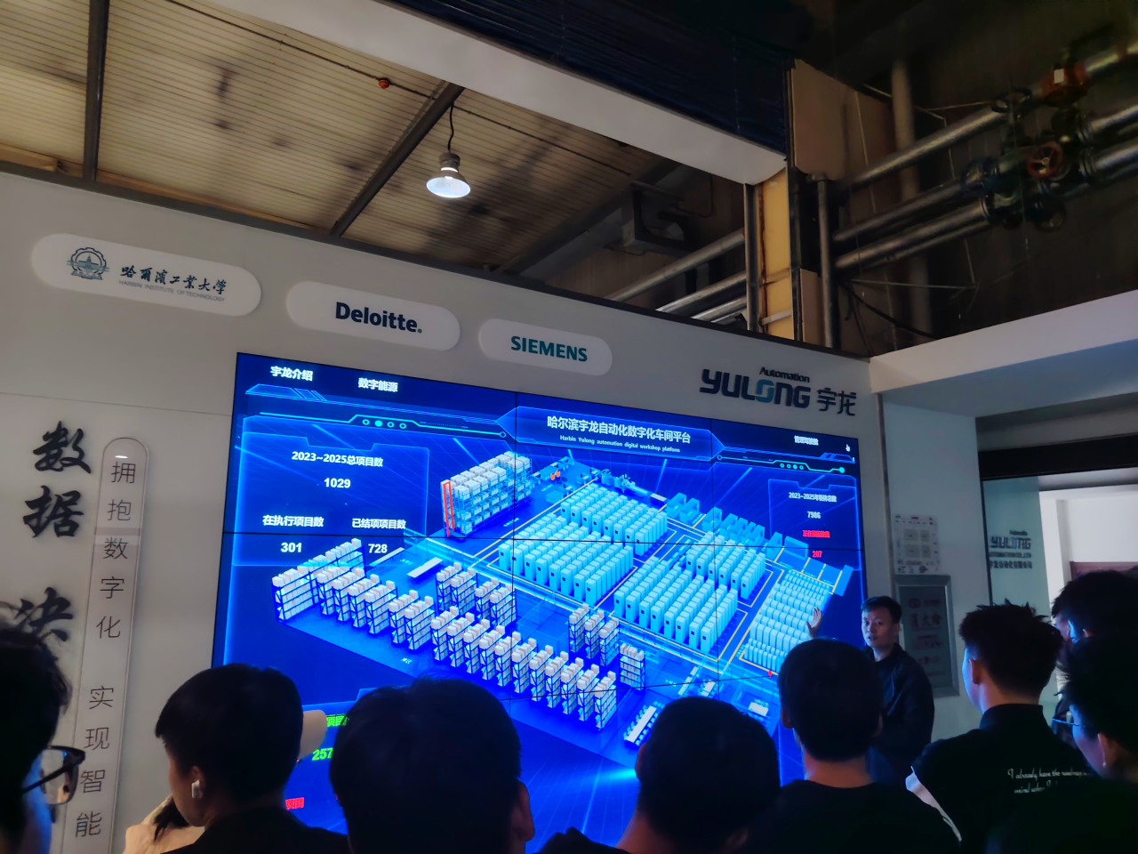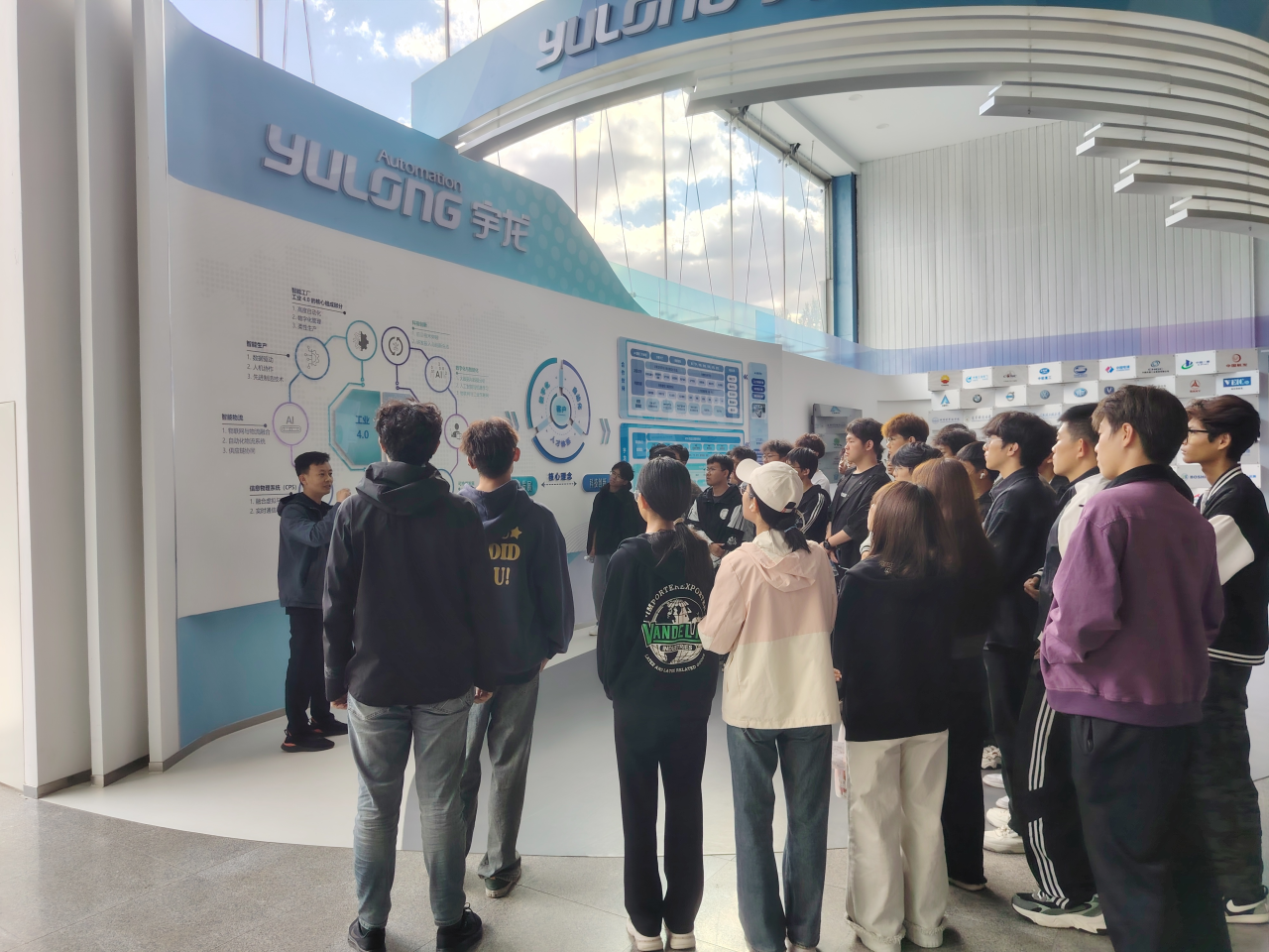 本次实习活动流程紧凑、内容充实,从多维度助力学生实现成长突破。在宇龙自动化展厅,学生系统地了解中国自动化产业从“传统机械控制”到“现代智能决策”的演进历程,直观感知技术迭代脉络;在MES大屏前,实时跳动的生产数据与设备状态监测图谱,使“数字化赋能制造”的概念变得直观生动,让学生对专业技术的应用价值有了更深刻理解;走进自动化车间,机械臂精准协作、AGV小车自主导航的动态场景,引发学生对“智能技术如何重塑生产流程与效率”的热烈讨论,进一步激发专业探索兴趣。