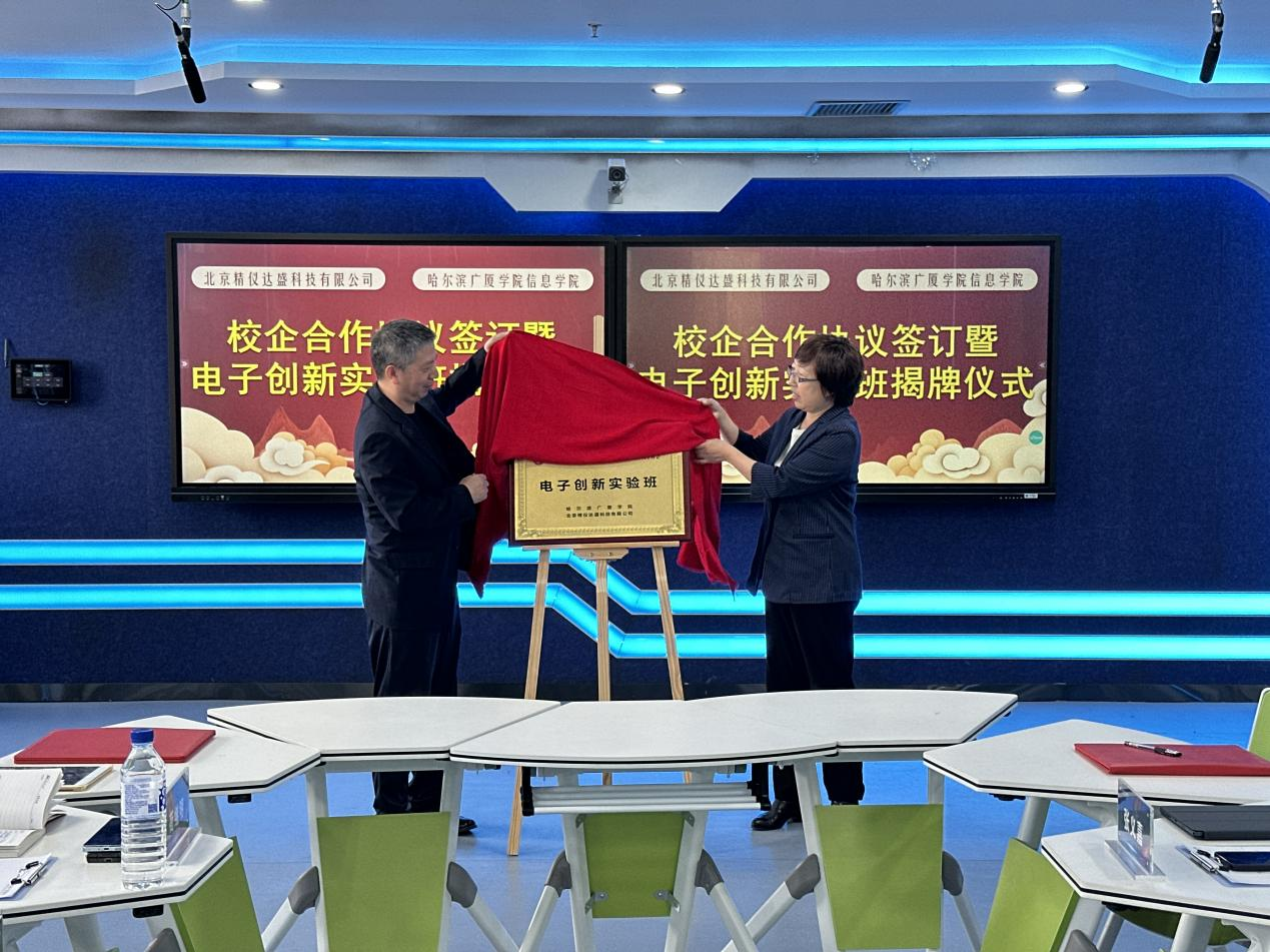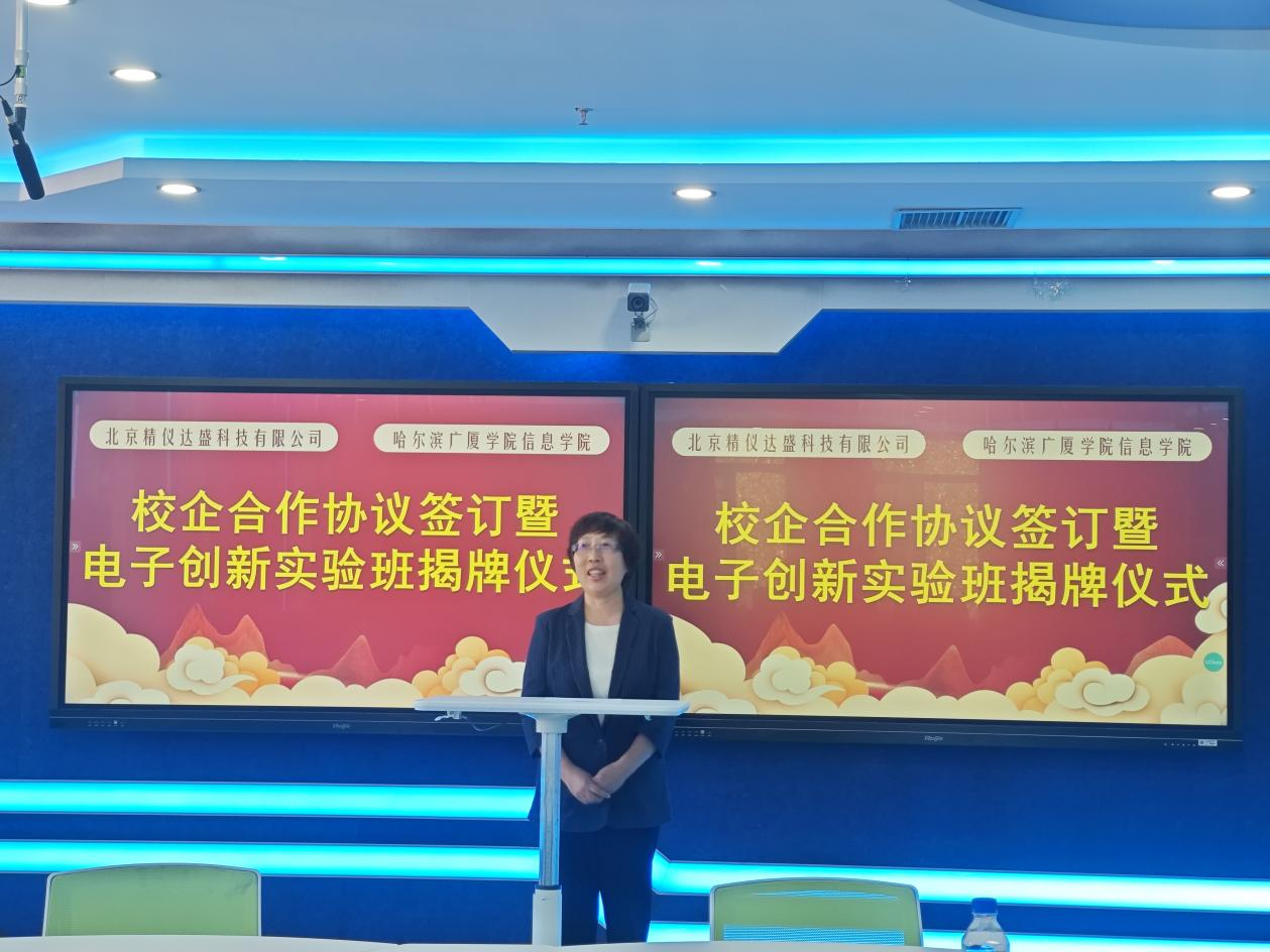 哈尔滨广厦学院信息学院与北京精仪达盛科技有限公司联合举办电子创新实验班揭牌仪式