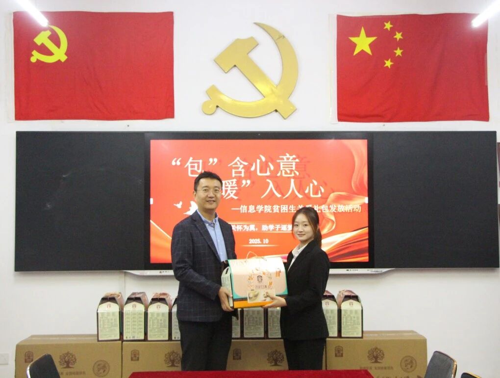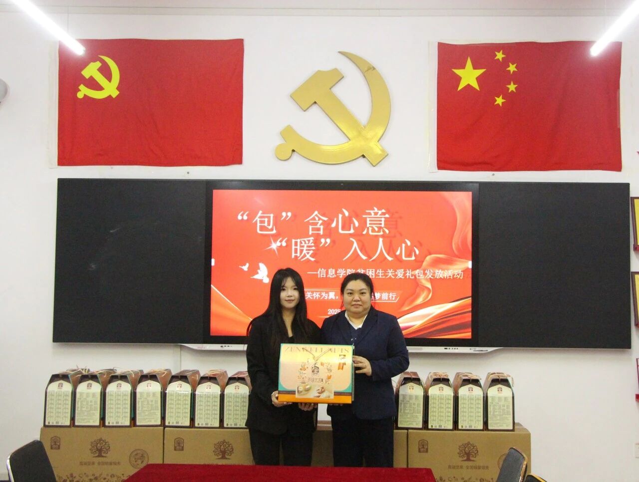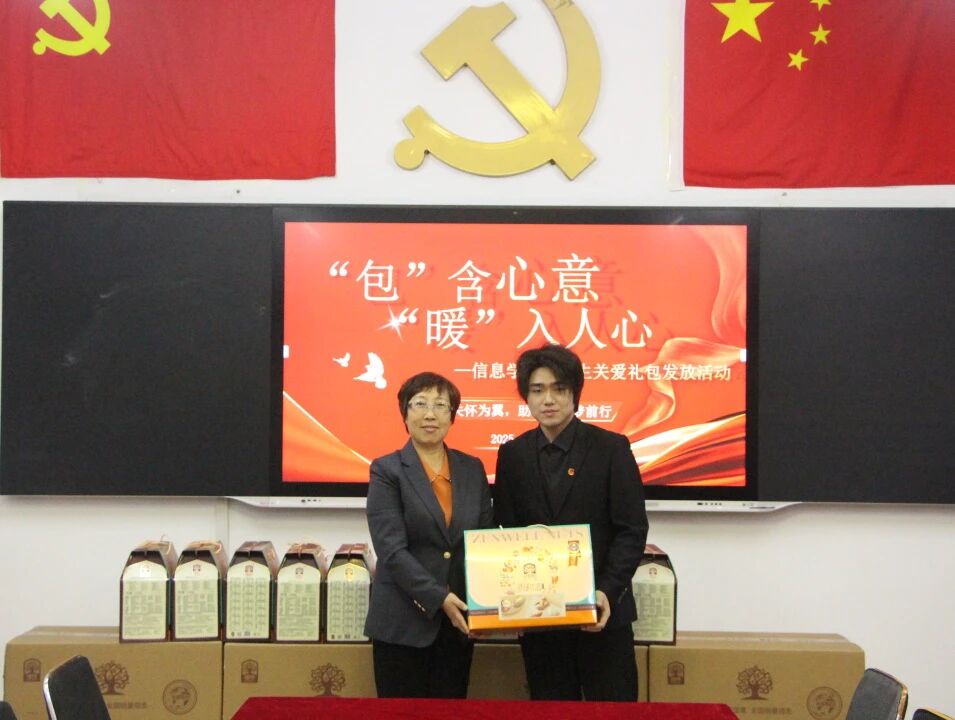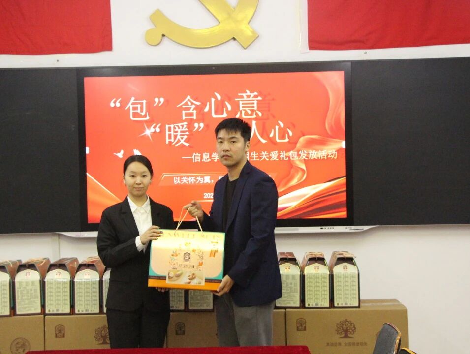 活动伊始,信息学院领导与全体辅导员老师亲手将暖心礼包递到同学们手中,这份沉甸甸的礼包,不仅饱含着学校对学子们的深切关怀,更寄托着对他们在冬日里安心求学、逐梦成长的殷切期许。