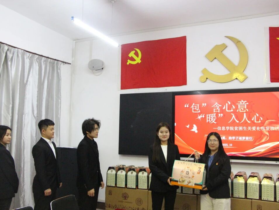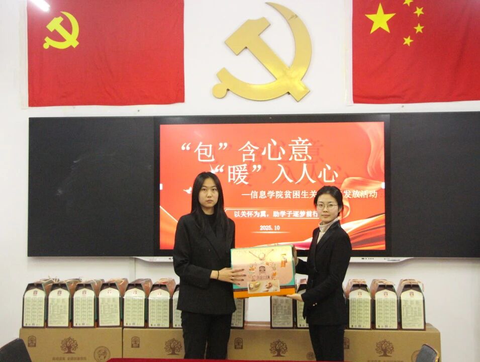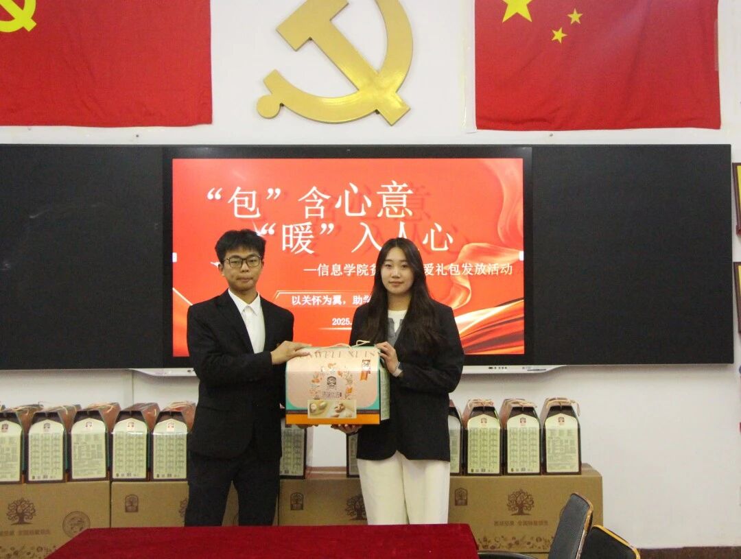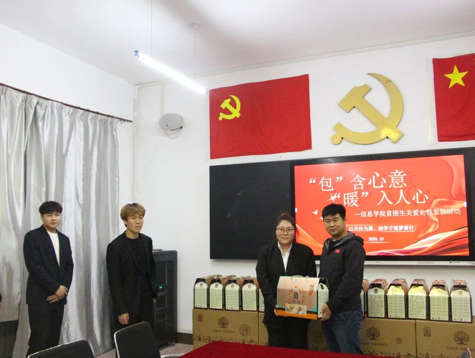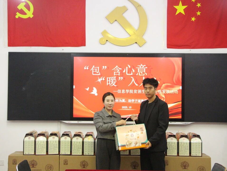 活动伊始,信息学院领导与全体辅导员老师亲手将暖心礼包递到同学们手中,这份沉甸甸的礼包,不仅饱含着学校对学子们的深切关怀,更寄托着对他们在冬日里安心求学、逐梦成长的殷切期许。