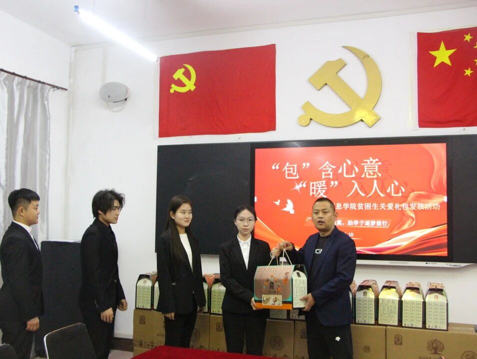 在冬天第一场雪翩跹而至的日子里,哈尔滨广厦学院的暖意比雪花更先抵达。10月15日下午15:30,信息学院于B-315教室举办“包”含心意,“暖”入人心信息学院助学关爱礼包发放活动。把学校的牵挂装进礼包,送到信息学子手中,让初雪天的清冷,都化作被温柔包裹的安心。信息学院院长郭红、信息学院党总支副书记王宁娟、全体辅导员老师以及各班级学生代表出席本次活动。