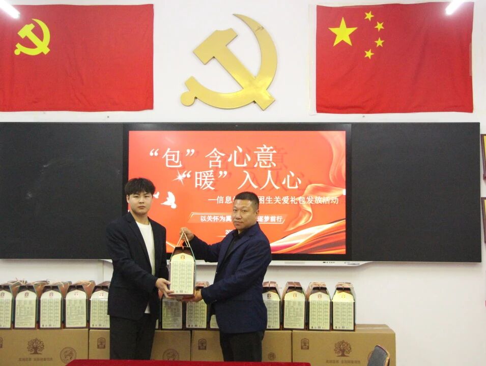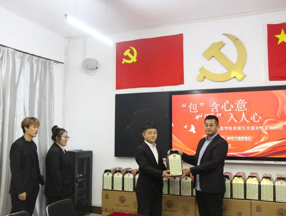 当信息学子们双手接过这份精心筹备的助学礼包时,脸上绽放出感动与欣喜交织的灿烂笑容。礼包里的每一件物品,都经过用心挑选,凝聚着学校对学生们生活冷暖的深切关怀,更寄托着对他们在学业上勇攀高峰、在人生中绽放光彩的殷切期望,仿佛一股暖流,瞬间驱散了冬日的寒意,让温暖与希望在学子心间久久萦绕。