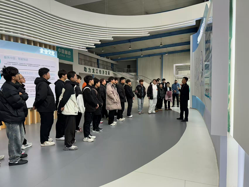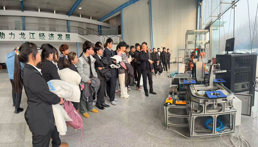 活动伊始,哈尔滨宇龙自动化有限公司胡经理带领师生参观企业展示区,围绕公司发展历程、核心业务与行业定位展开介绍。从自动化设备研发到工业场景解决方案,胡经理通过案例,生动展示了企业在智能制造领域的技术积累与市场布局,让学生们直观感受到自动化行业的发展潜力,为后续学习奠定认知基础。