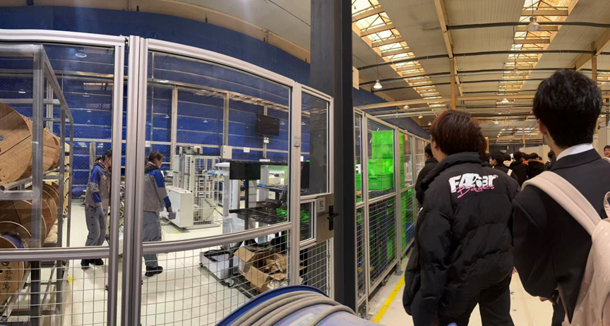 在胡经理与技术团队的带领下,师生们走进生产车间,开启“沉浸式”产线观摩。车间内,自动化组装生产线、智能检测装置、数控加工设备有序运转。胡经理就产线流程、设备协同逻辑及质量管控标准逐一讲解,重点演示了设备调试过程与安全操作规范。学生们不时驻足交流,结合所学理论向技术人员请教“产线优化思路”“元件选型技巧”等问题,实现了理论与实践的深度衔接。
