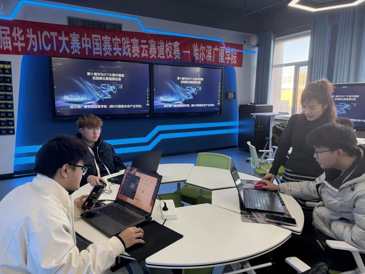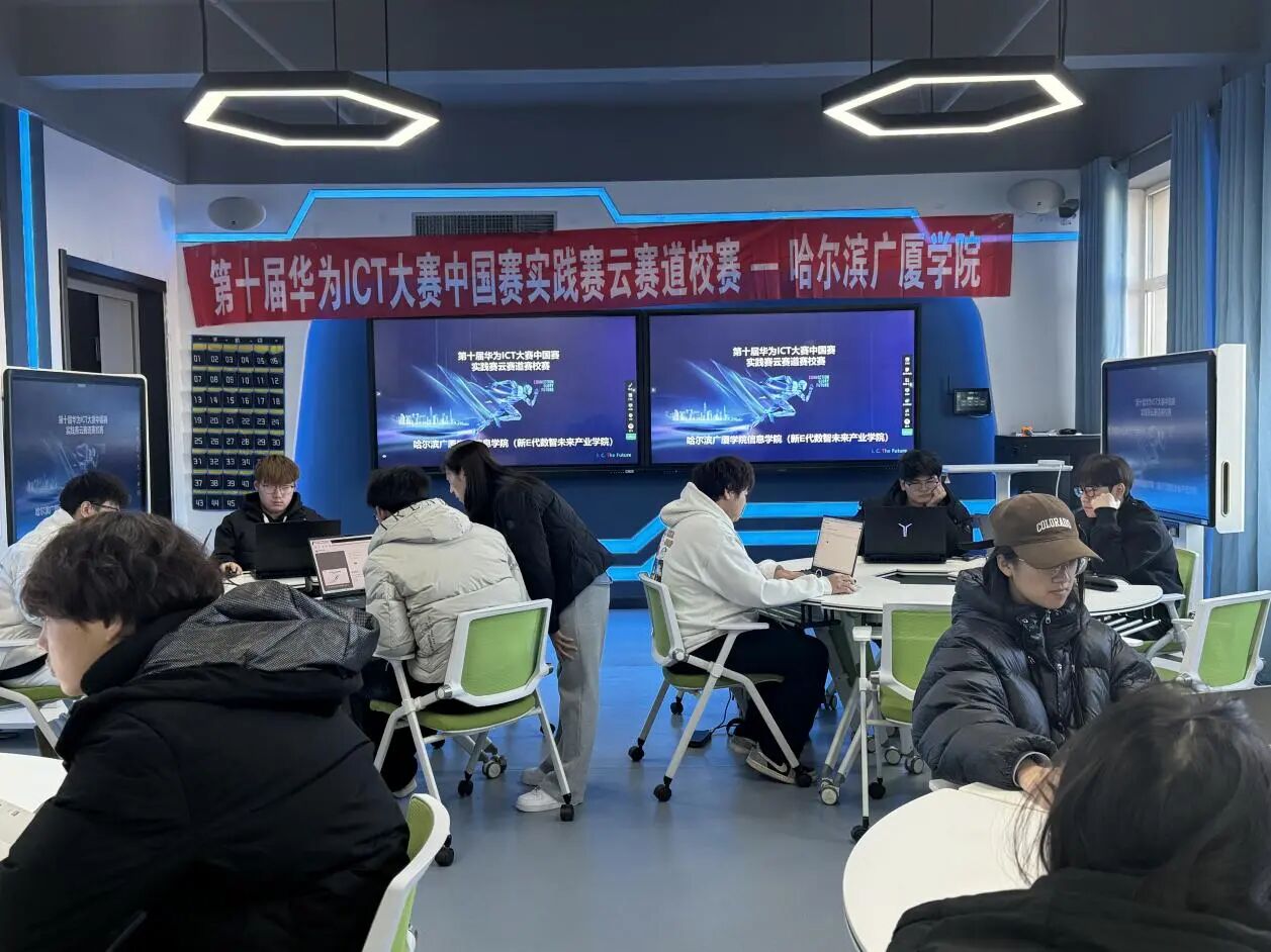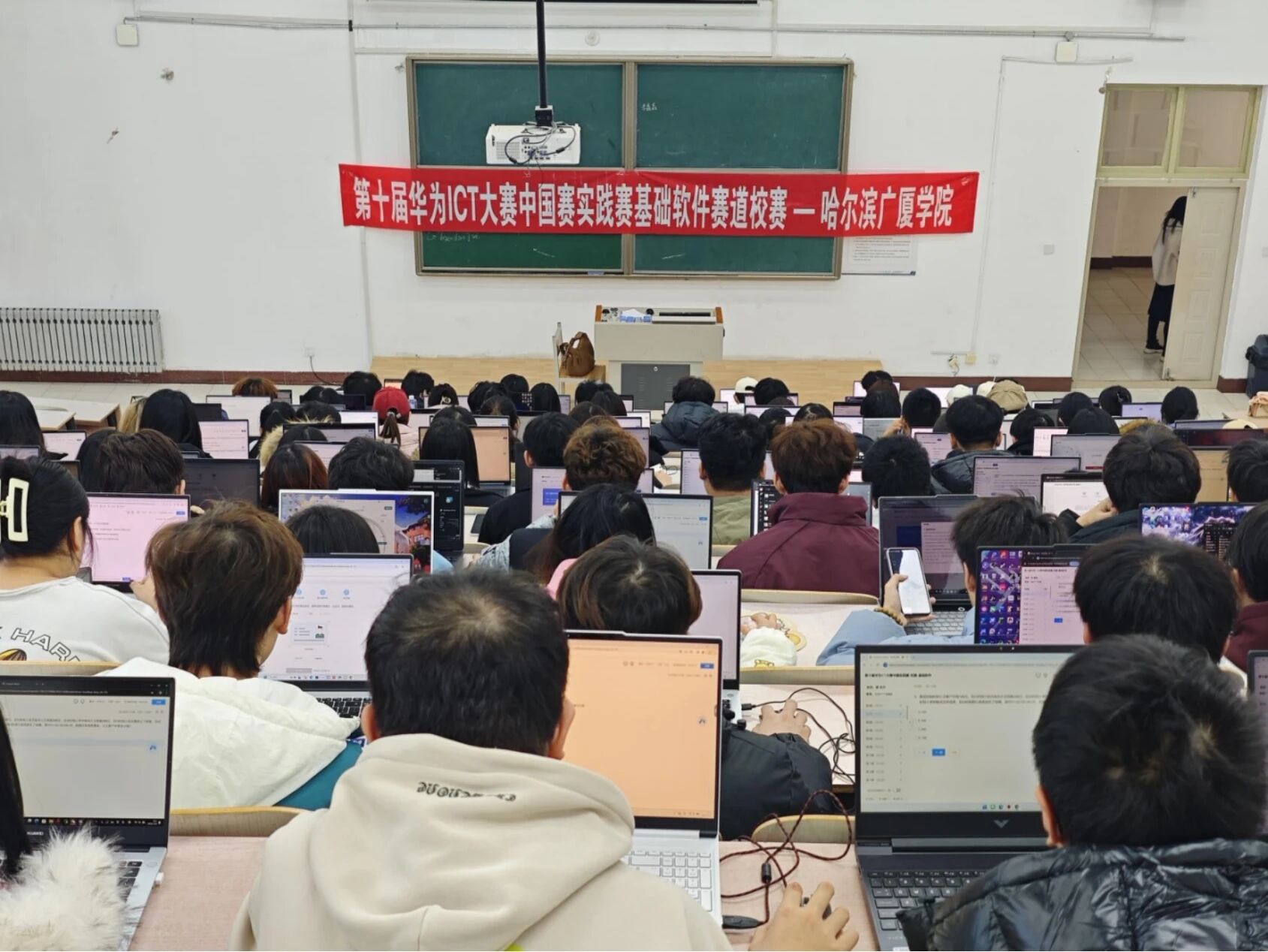 11月9日上午,哈尔滨广厦学院信息学院(新E代数智未来产业学院)第十届华为ICT大赛校赛顺利举办。作为学院重点打造的产业学院赛事,本次校赛以“聚焦ICT前沿,锤炼实战能力”为核心,设置网络、云、基础软件、昇腾AI四大平行赛道。各赛道分考场同步竞技,吸引了来自多个专业的学生踊跃参赛,现场气氛热烈、竞争激烈。