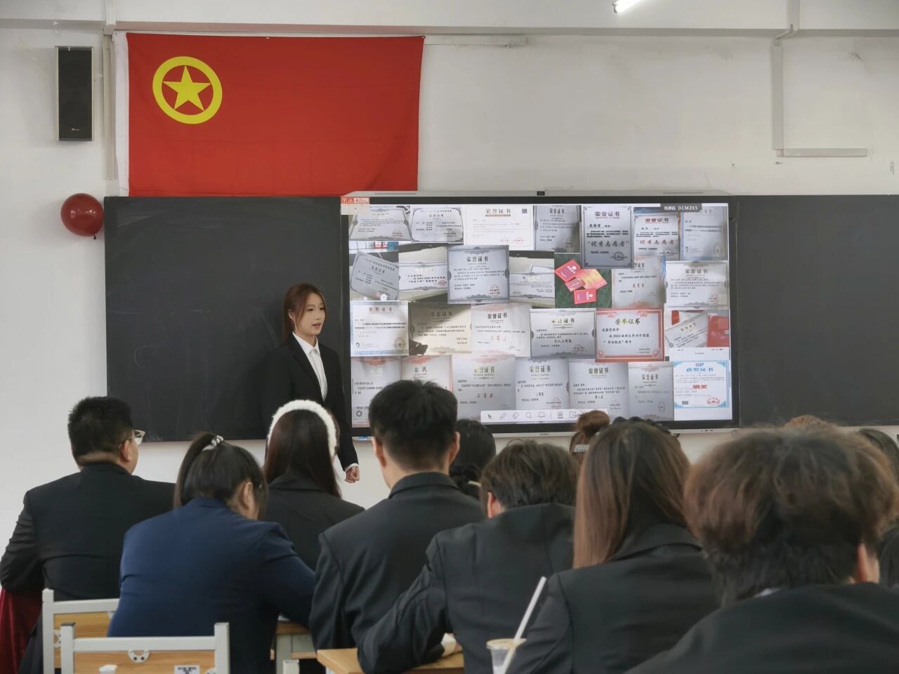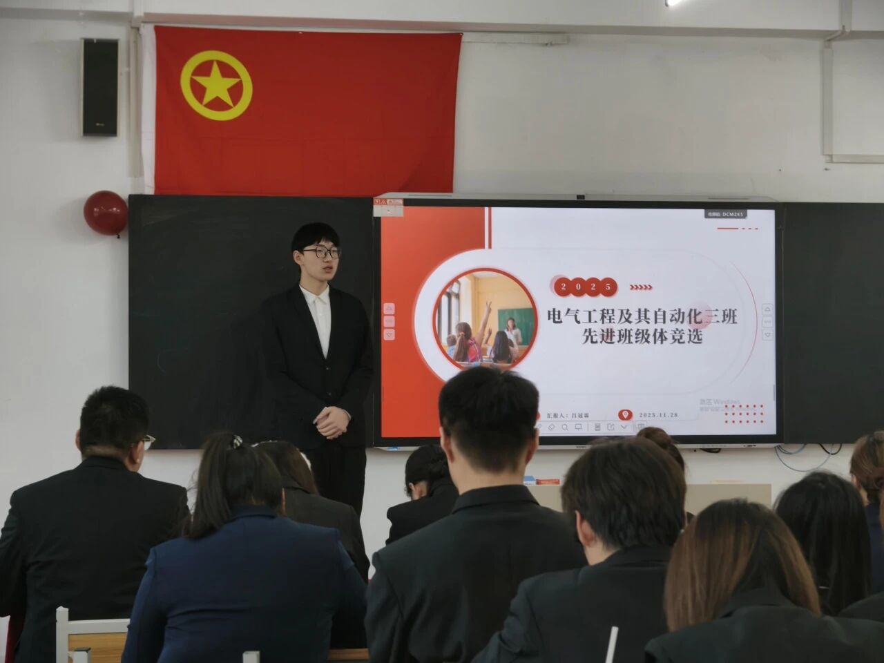 答辩环节,不仅系统呈现了各班级在思想建设、文体活动等方面的丰硕成果,配图中汇报者还正清晰阐释班级特色亮点。这样的答辩形式,既让班级风貌直观可视化,更让团队精神通过具体案例变得愈发鲜活可感、富有感染力。