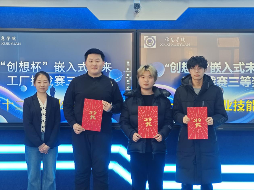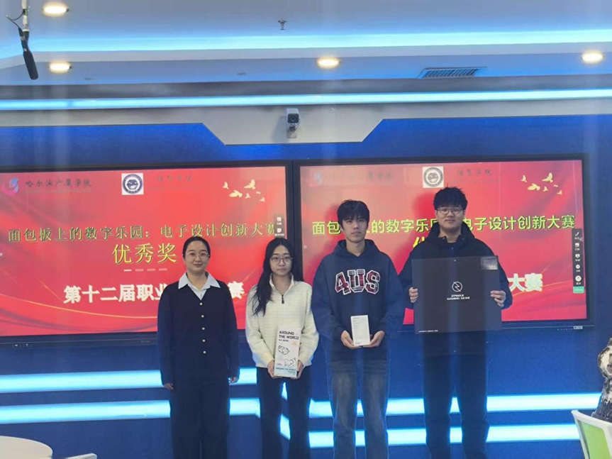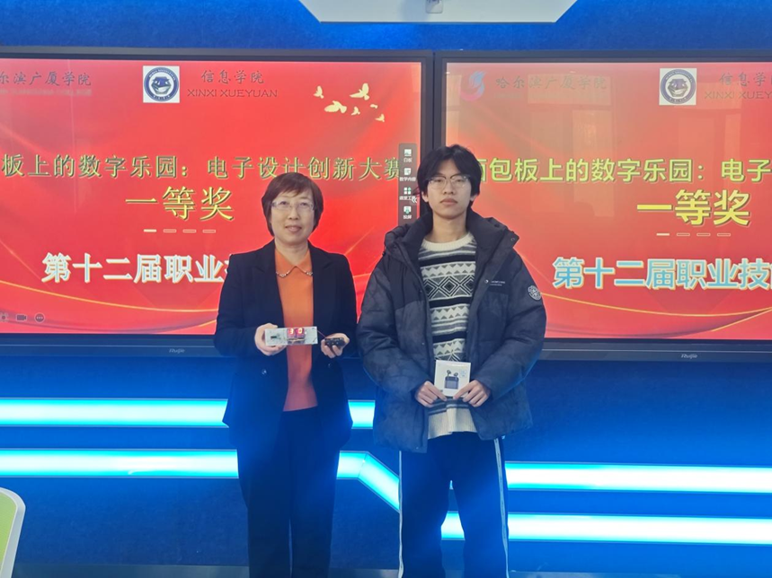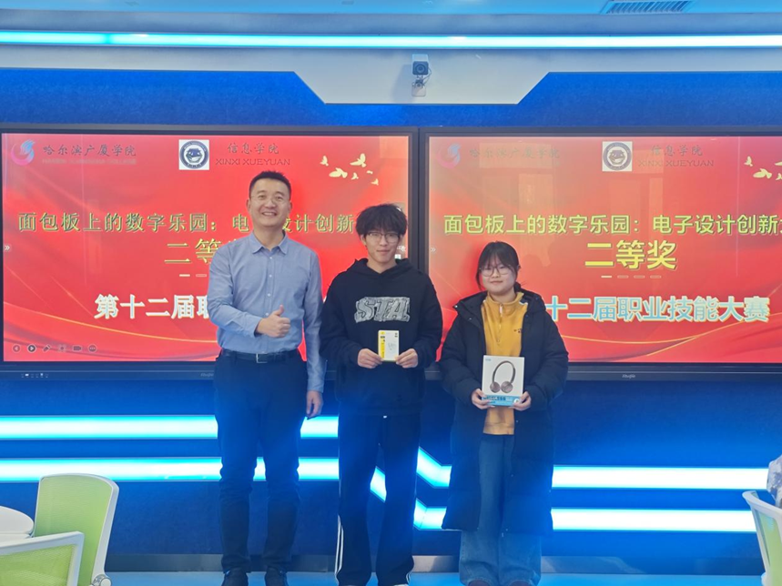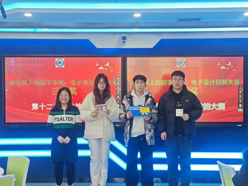 12 月 2 日,哈尔滨广厦学院第十二届技能大赛颁奖仪式隆重举行。由通信工程专业组织的“三大校级赛事”——“创想杯”嵌入式未来工场挑战赛、ICT 信息与通信技术大赛、“面包板上的数字乐园”电子设计创新大赛圆满收官。信息学院(新E代数智未来产业学院)院长郭红、院长助理张义嘉、通信工程教研室主任董立春出席活动并为获奖学生颁奖。