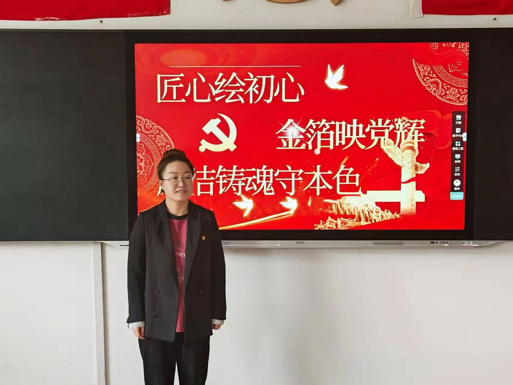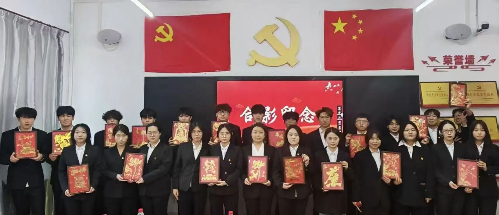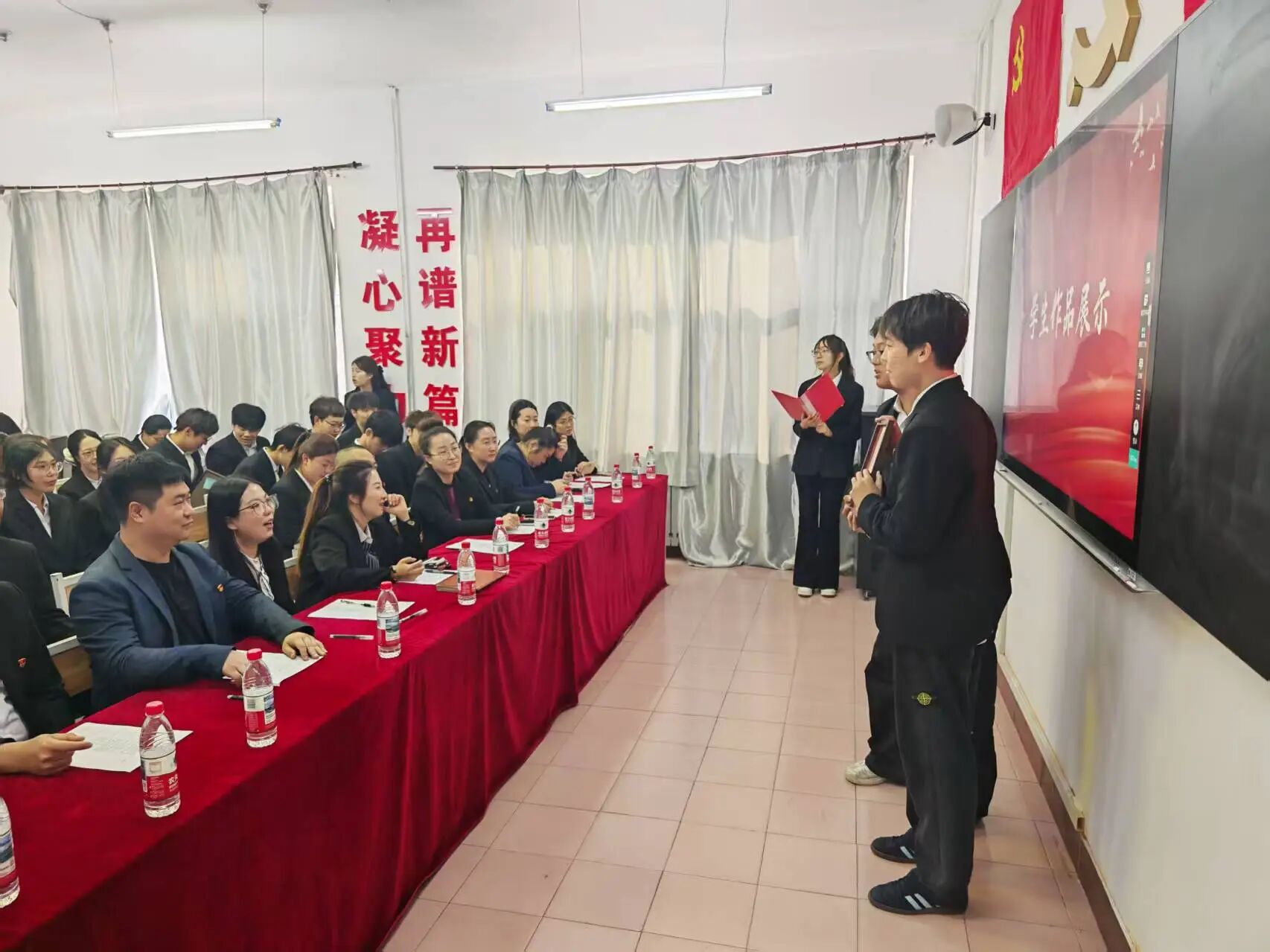 本次活动由信息学院全体辅导员老师担任评委。各组同学分别上台展示并进行讲解。创作完成后,各评委老师从主题立意、工艺技法、创意表达等维度对作品逐一评审,现场评选出优秀作品并予以表彰。评委们对青年学子的创作热情与艺术水准给予高度肯定,认为本次活动将传统文化与党性教育有机结合,兼具思想性、艺术性与实践性。