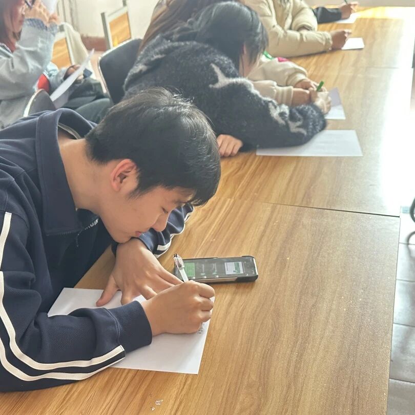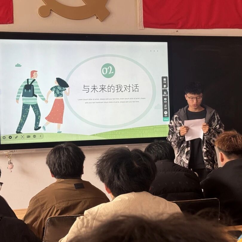 活动伊始,全体同学在教室观看了心理教育视频,在安静的氛围中了解自我关怀的意义。随后“十年后的我·未来对话”环节,同学们在引导下畅想未来,写下对自身的期许与思考,部分同学主动分享了信件内容,现场气氛活跃。