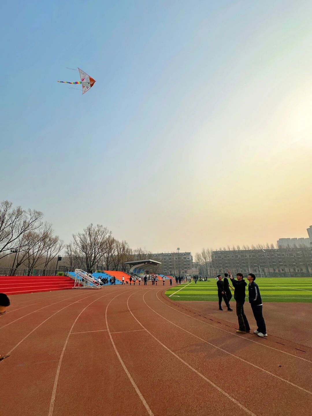 微风轻拂,一只只承载着心事与希冀的风筝腾空而起,在湛蓝天空上摇曳生姿,同学们在奔跑与仰望中完成了一次与自己内心的对话。