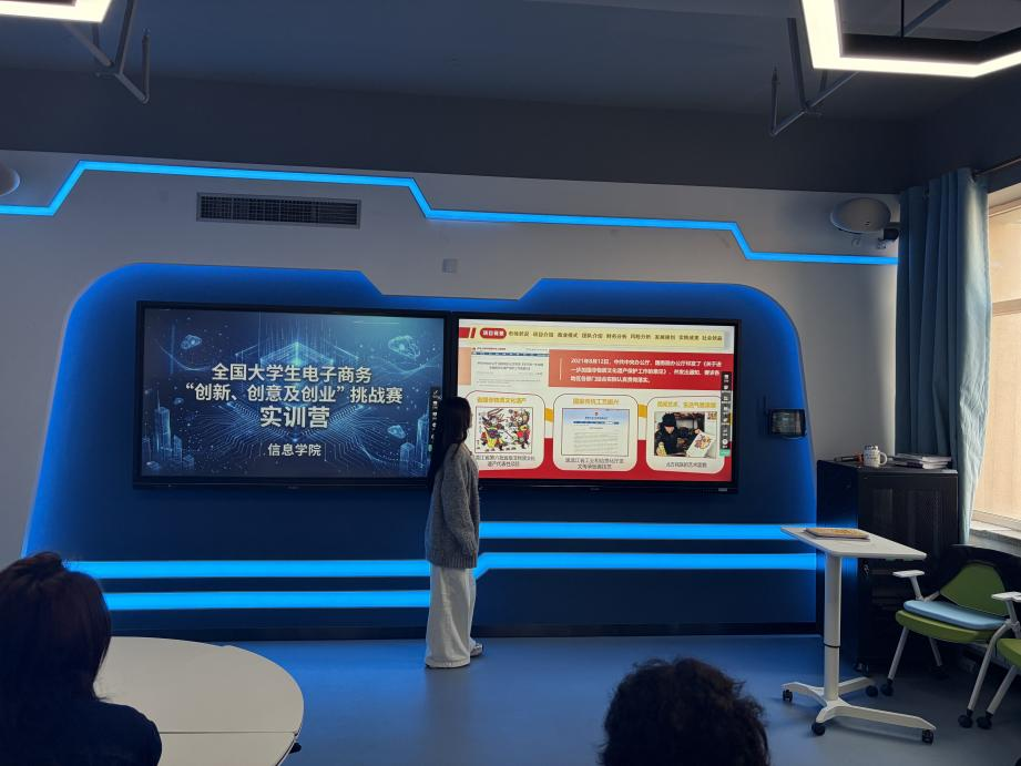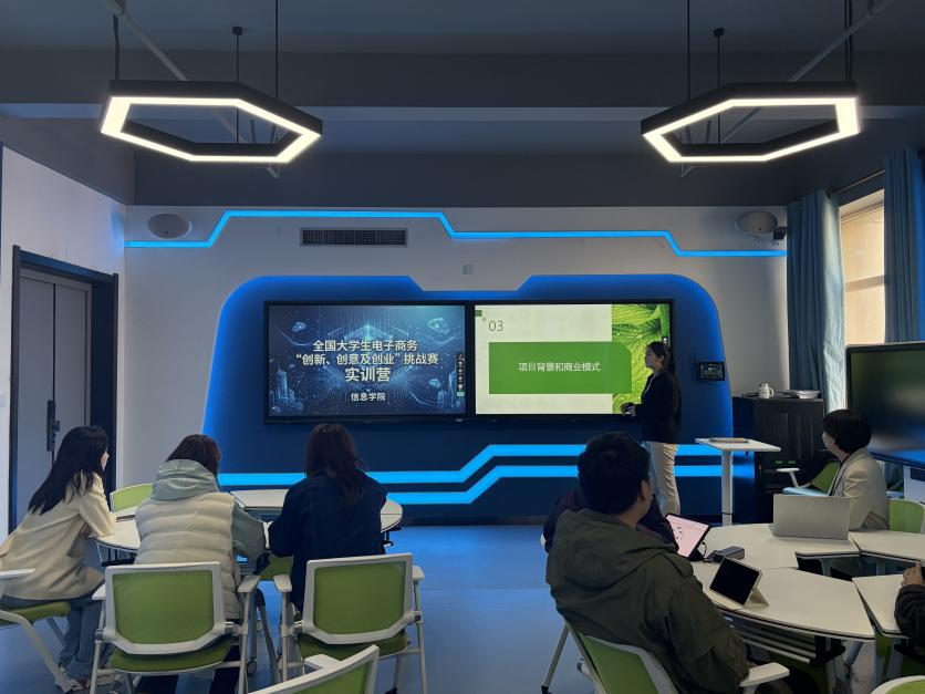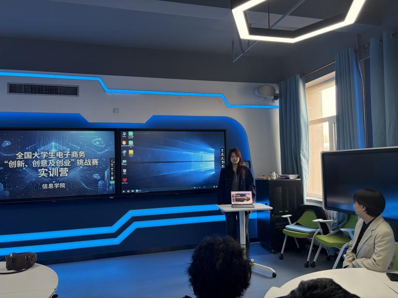 在项目路演环节,参训学生依次站上讲台,面向评委与同学展示自己的电商项目。从非遗文化电商到智慧生活服务,各类创新方案层出不穷,充分展现了信息学院学子的创新创业活力与专业素养。