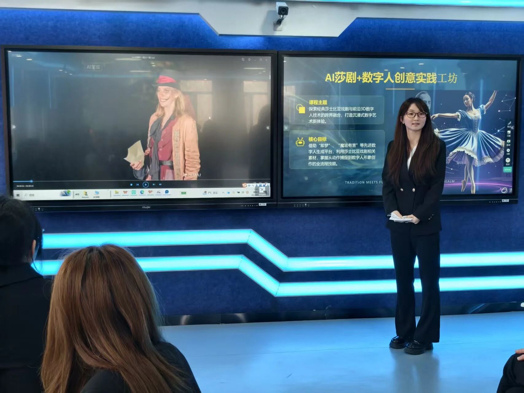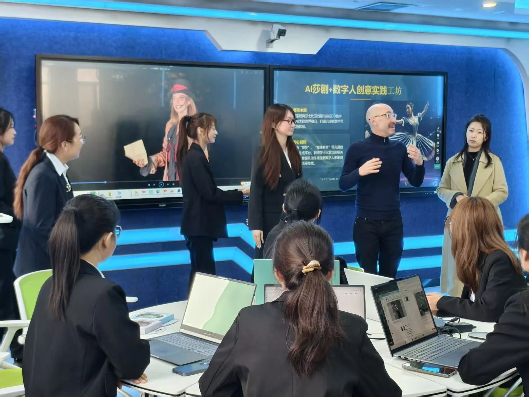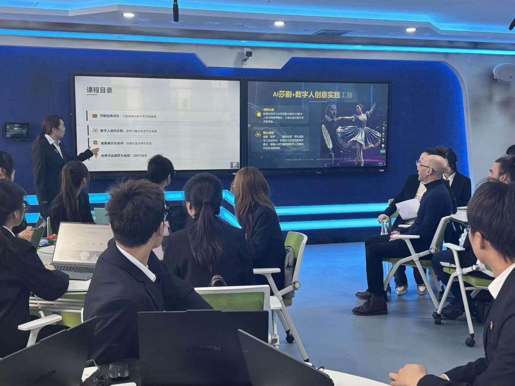 为践行高端化、全球化、个性化办学理念,推动人工智能与人文艺术深度融合,4月12日,哈尔滨广厦学院信息学院于智慧教室Z424举办“AI莎剧,数字人创意实践工坊”国际文化交流活动。剑桥莎士比亚戏剧节剧团艺术家们、信息学院院长郭红、信息学院党总支书记王宁娟、信息学院副院长张义嘉、辅导员代表及《人工智能应用与实践》课程教师代表及学生共同参与本次跨界实践。