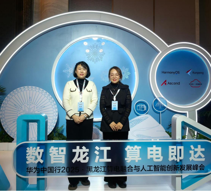 为深化产教融合、加速AI产业人才培养,11月30日,信息学院(新E代数智未来产业学院)教师成秀秀、白玲参加“华为中国行2025·黑龙江算电融合与人工智能创新发展峰会”,本次峰会以“数智龙江,算电即达”为主题,由黑龙江省发展和改革委员会、工业和信息化厅、数据局等多个部门指导,华为技术有限公司等机构共同承办,汇聚了400多位来自全国各地的院士、专家学者、企业代表和高校教师,共同探讨龙江算电融合与人工智能产业生态的建设路径。