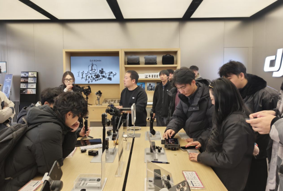 在商业展区,学生们实地观摩了大疆、富士等品牌的最新摄影设备。其中大疆DJI Pocket 3的一英寸传感器与三轴云台一体化设计,富士X-S20的胶片模拟视频功能,让大家直观感受到技术革新对影视创作的推动作用。"将博物馆里的历史器材与这些新型设备对比,更能理解影像技术的迭代逻辑。"带队教师表示,这种"古今对话"的教学形式有助于学生建立系统的专业认知。