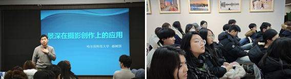 活动现场,来自哈尔滨师范大学的郝树国老师以 “景深在摄影创作上的应用” 为主题,为同学们带来了一场干货满满的专业分享。郝老师结合多年教学与创作经验,从景深的原理、影响因素出发,通过大量经典摄影案例,生动阐释了景深控制在突出拍摄主体、营造画面氛围、传递创作意图等方面的关键作用,并针对不同拍摄场景下的景深运用技巧进行了细致讲解,让同学们对这一核心摄影技术有了更为深刻的理解与认知。