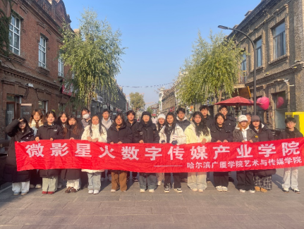 10月28日,在微影星火数字传媒产业学院组织下,哈尔滨广厦学院2025级影视摄影与制作专业1班的学生们,由孟华老师带队走进松光里中华巴洛克街区,将《构成设计》的“点线面”学习搬到实景中,用观察与记录完成一堂生动的实践课。