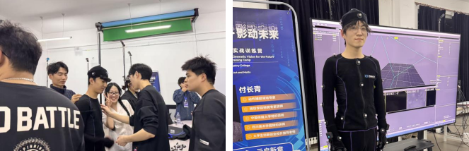 实操演示环节高潮迭起,付长青通过视频还原全流程,演员穿戴Marker点装备表演后,MC系列相机同步完成供电与数据传输,经FPGA芯片解算后传输至UE引擎,15分钟内即可实现虚拟角色动作复刻,效率较传统流程提升80%以上,让学生亲历前沿技术魅力。