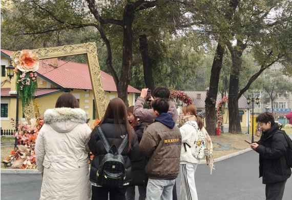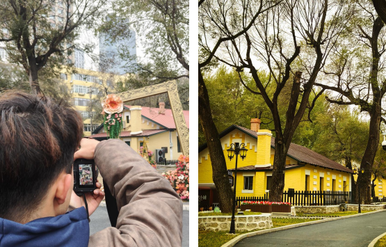 活动在具有浓郁历史文化氛围的“黄房子”俄式街区展开。在专业教师的指导下,学生们首先进行了风光摄影实践,运用所学知识捕捉建筑特色与街区风貌,通过镜头展现俄式建筑的独特魅力。随后开展的人像拍摄环节中,学生们在特色街景中练习环境人像创作,将人物与建筑完美融合,在实践中掌握了人像构图、模特引导及自然光运用等专业技能。