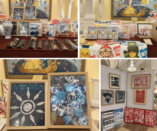 我校艺术与传媒学院高度重视此次中俄艺术交流契机,在微影星火数字传媒产业学院组织下,师生精心创作和遴选了30余件参展作品,包括绘画类作品与文创产品,涵盖中国画、剪纸、绳编、竹刻及文创设计等多个类别。这些作品立足中华优秀传统文化,融入当代设计理念和青年审美视角,以多元艺术形式展现了我校师生扎实的专业功底与蓬勃的创作活力。其中,融入龙江地域特色元素的主题创作、非遗技艺与现代设计相结合的文创产品,受到现场观众和俄方艺术家的广泛好评。
