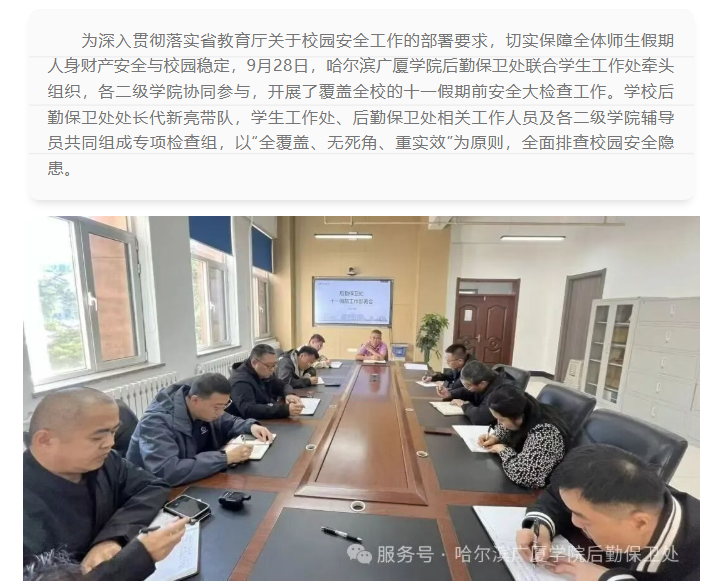 哈尔滨广厦学院开展十一假前安全大检查工作