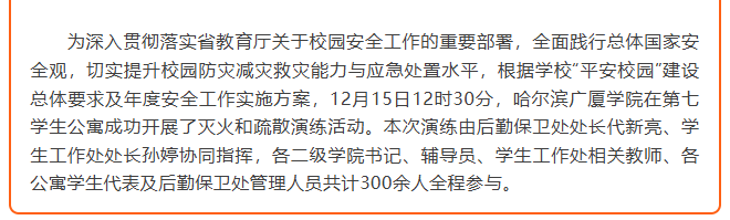 实战筑防 平安护航 // 哈尔滨广厦学院开展灭火和疏散演练活动