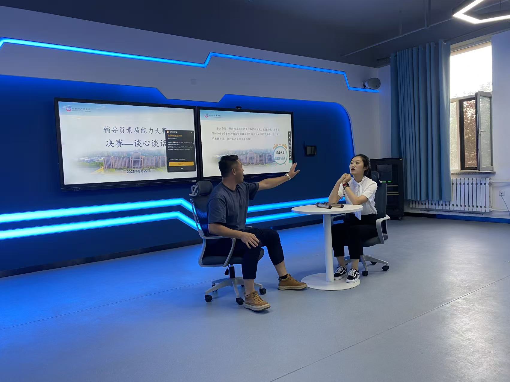 谈心谈话环节是辅导员运用思政及相关学科原理、方法、策略等,与学生沟通交流,解决学生日常遇到的疑惑或困难。谈心谈话过程中展现了辅导员的个人魅力与开展学生思想工作的艺术方法。主要考查辅导员对相关政策、学生特征、学生成长成才规律的了解把握及对学生的教育引导能力。本次比赛过程中,选手随机抽题,与助演展开8分钟对话,在倾听中捕捉需求,在共情中传递力量,在引导中点亮方向,真挚的对话让听众深刻感受到辅导员工作的温度与厚度,现场气氛热烈。