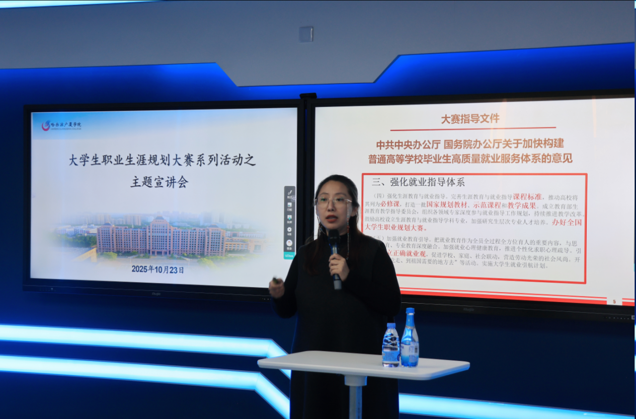 2025年10月23日,哈尔滨广厦学院主楼0131智慧教室气氛热烈,一场聚焦大学生职业生涯规划的主题宣讲在此隆重举行。本次活动作为哈尔滨广厦学院大学生职业生涯规划大赛系列活动的重要环节,旨在提升学校就业指导工作水平,助力学生科学规划职业生涯。学生工作处处长孙婷、学生工作处处长助理张志鹏、各二级学院书记、全体辅导员以及学生工作处全体人员齐聚一堂,共同聆听这场干货满满的分享。活动特别邀请到黑龙江建筑职业学院就业指导教研室主任丁姿老师担任主讲嘉宾。