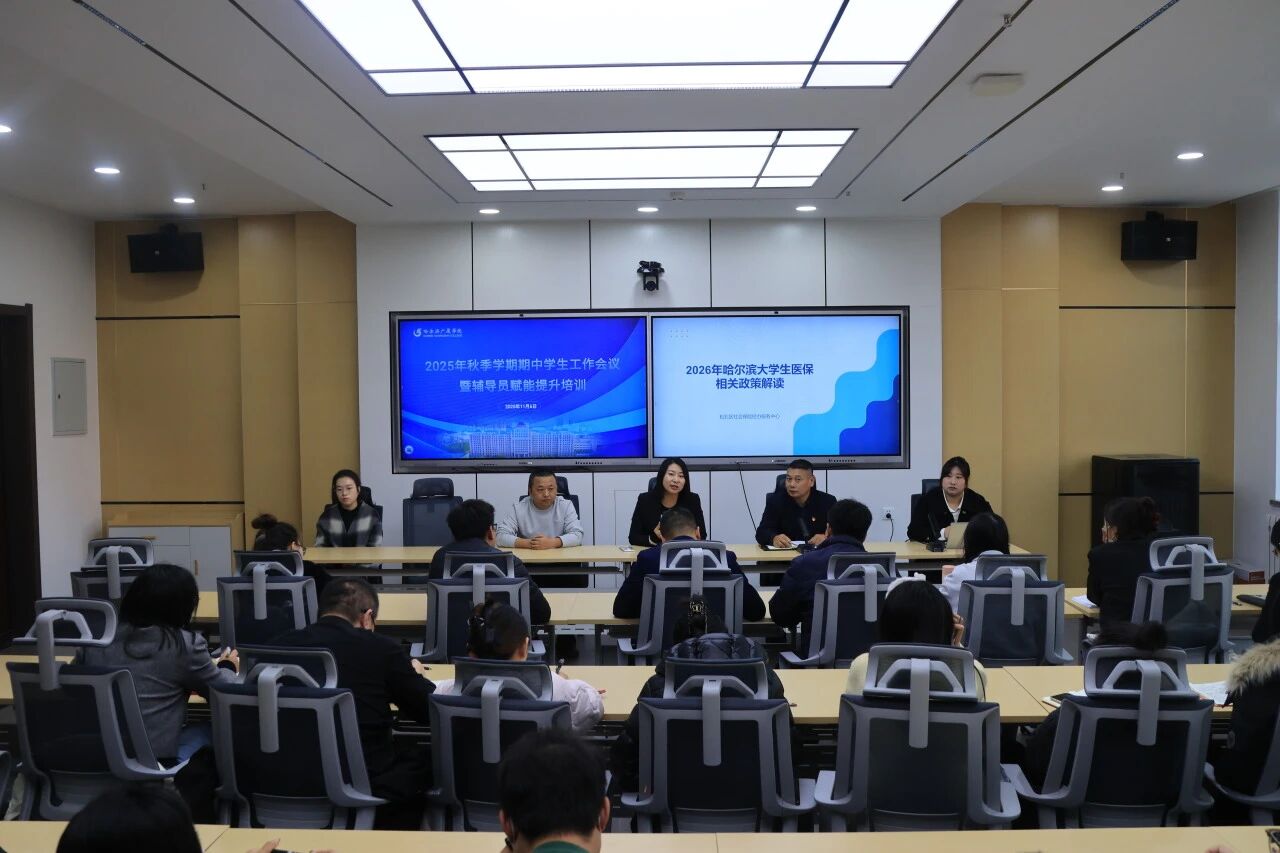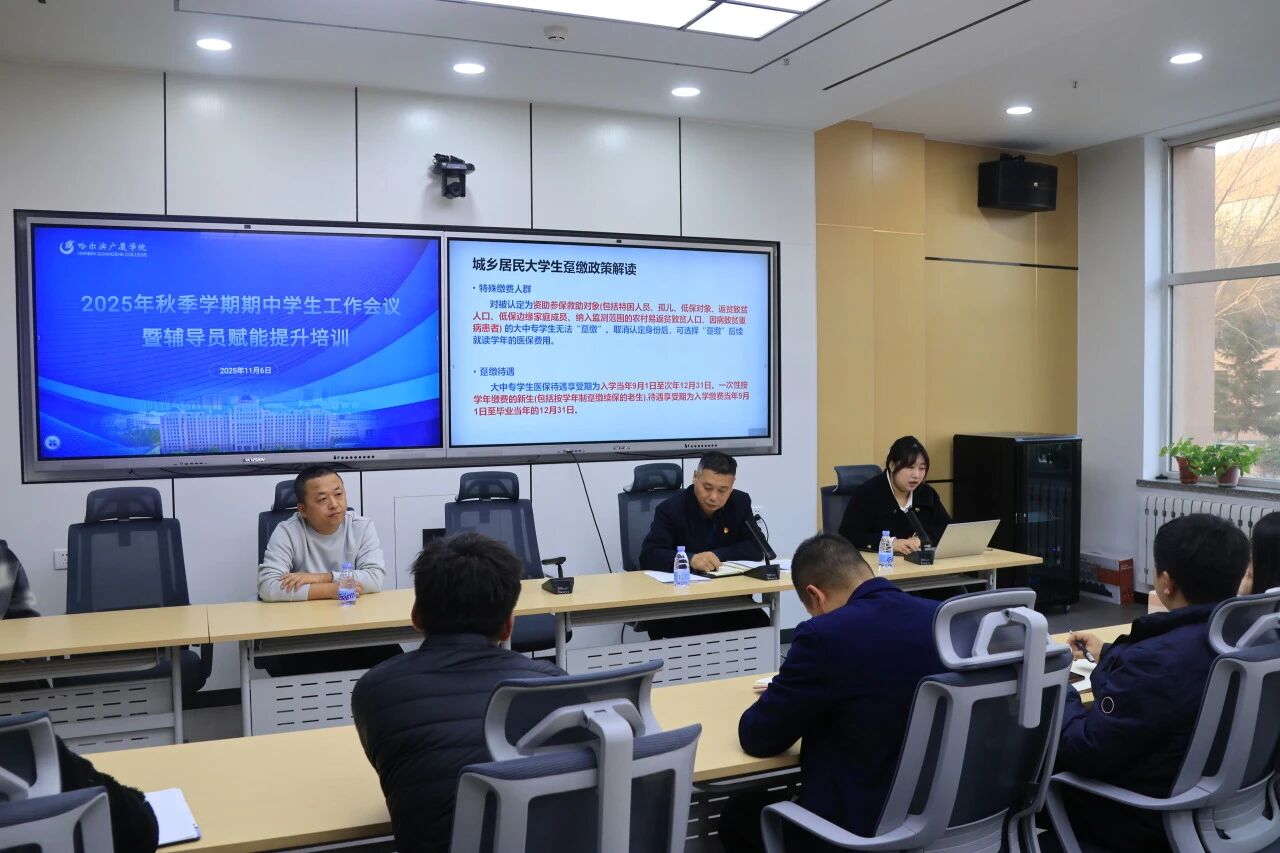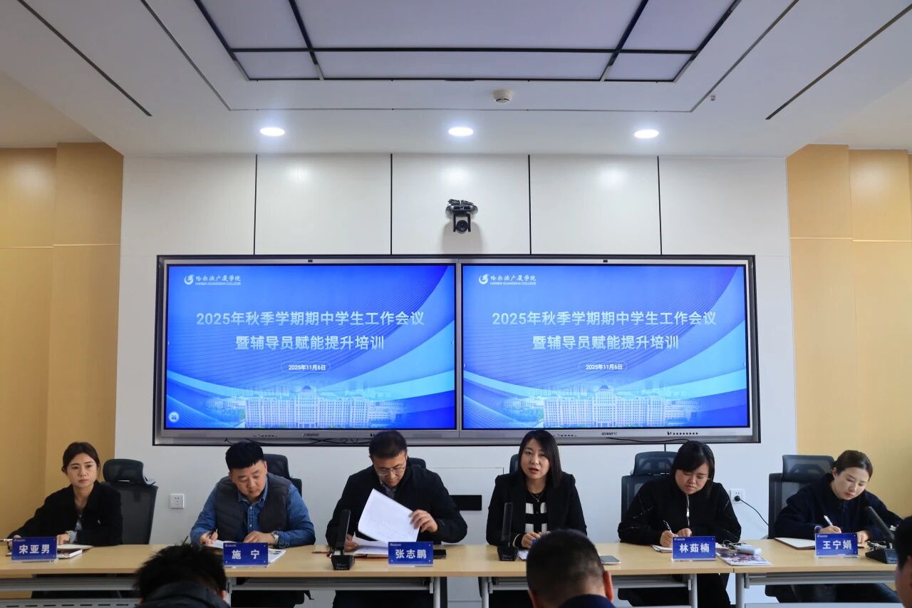为全面总结学生工作阶段性成果,强化辅导员队伍专业化建设,切实提升学生管理服务效能,2025年11月6日,我校顺利召开秋季学期期中学生工作会议暨辅导员赋能提升培训。会议聚焦学生工作核心任务,通过考核反馈、经验总结、后续工作要求与大学生医保相关政策培训,为辅导员队伍注入新动能,推动学生工作高质量发展。学生工作处处长孙婷、学生工作处处长助理张志鹏、各二级学院书记、全体辅导员以及学生工作处全体人员参与会议。