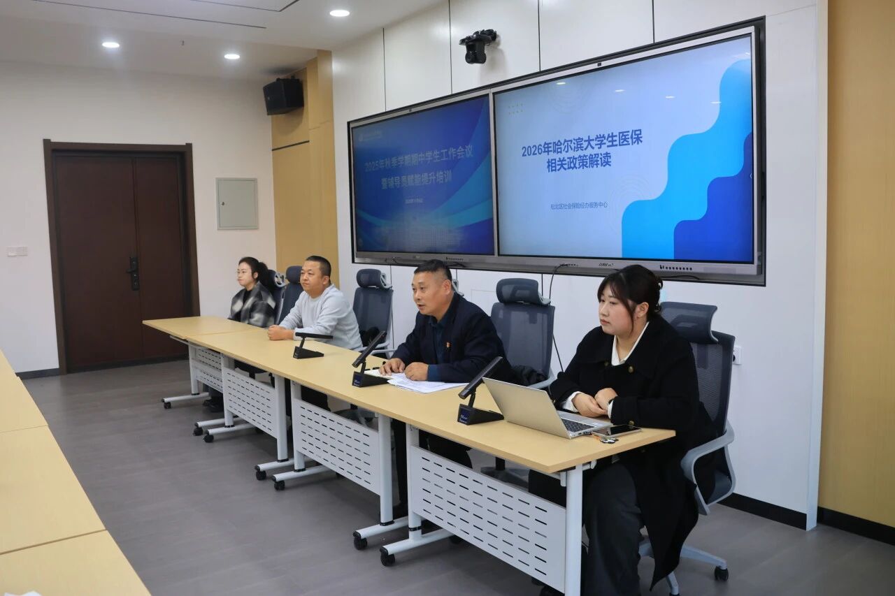 为提升辅导员业务能力,精准服务学生医保需求,会议特别邀请松北区区社保中心副处长郜洪国、以及税务局和利业街道相关工作人员开展专题培训。专家对2026年哈尔滨大学生医保政策进行了全面且细致的解读,涵盖参保范围、缴费标准以及特殊缴费人群规定等关键内容。其中,按学制趸缴政策备受关注,该政策为学生提供了长期稳定的医保保障选择,减轻了学生与家长的经济压力,让辅导员对医保政策有了更为清晰、深入的认识,为后续精准开展学生医保工作筑牢了坚实根基。