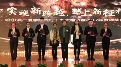 12月15日下午15时,哈尔滨广厦学院践行十九大精神暨2017年度颁奖盛典在图书馆五楼报告厅拉开帷幕。校领导叶曲炜、韩毓洁、金连芳、学校全体中层干部、学生家长代表及千余名获奖学生代表齐聚一堂,共同见证了这一盛典。