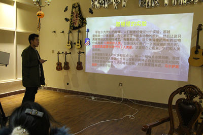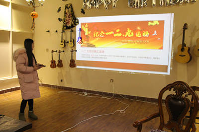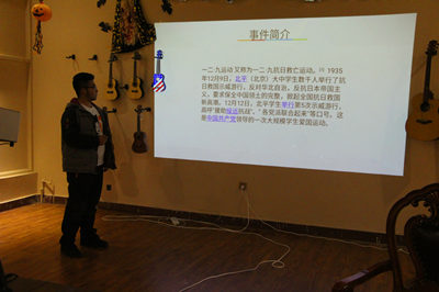 来自2017级电子商务一班的汤鹏对“一二·九”运动进行了介绍,与同学们共同回顾了这段光辉的历史。读书交流会气氛热烈,同学们发表自己不同的见解。来自通识教育学院的郭思洋为大家朗读了两首诗歌,将读书会的气氛带到了高潮。大家仿佛回到了那个战争年代,每个人都在反抗日本的队伍中,高喊着不做奴隶的口号。同学们纷纷表示,处于和平年代,他们要做的就是铭记历史,珍惜当下美好生活,将自己的大学生活过得更加丰富充实。